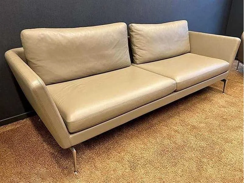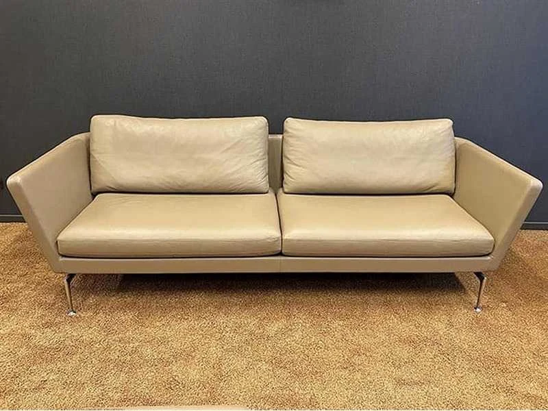 VITRA Suita Zetel 3-zit Design by Antonio Citterio, Camel Leder 'premium F', gepolijste alu poten, Nee Merk: Vitra Model: Suita Kleur: camel Lengte: 230cm Hoogte: 67cm Diepte: 85cm Materiaal: leder