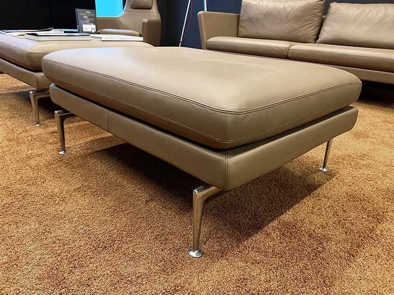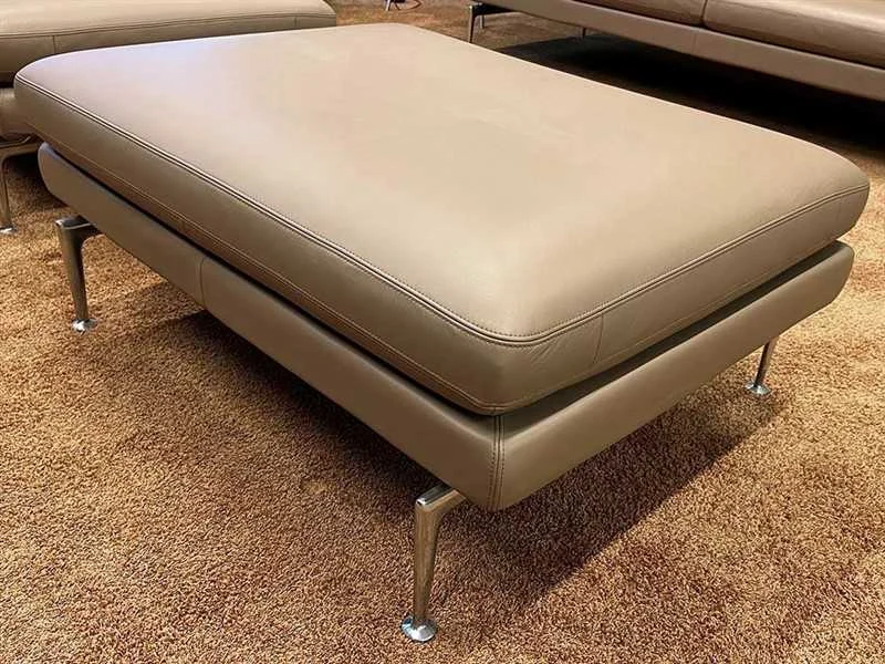 VITRA Suita Ottoman Poef Design by Antonio Citterio - Camel Leder 'premium F' met gepolijste alu poten, zeer lichte gebruikssporen Nee Merk: Vitra Model: Suita Ottoman Kleur: camel Gewicht: 30kg Lengte: 75cm Breedte: 100cm Hoogte: 43cm Materiaal: leder
