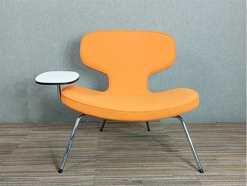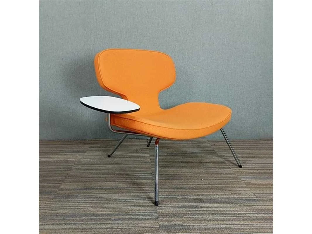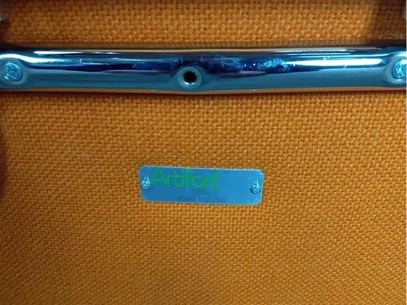 ARTIFORT Libel Lounge Zetel tafeltje rechts - Oranje Stof, Chromé poten, zeer lichte gebruikssporen Nee Merk: Artifort Model: Libel Kleur: oranje Gewicht: 25kg Materiaal: textiel