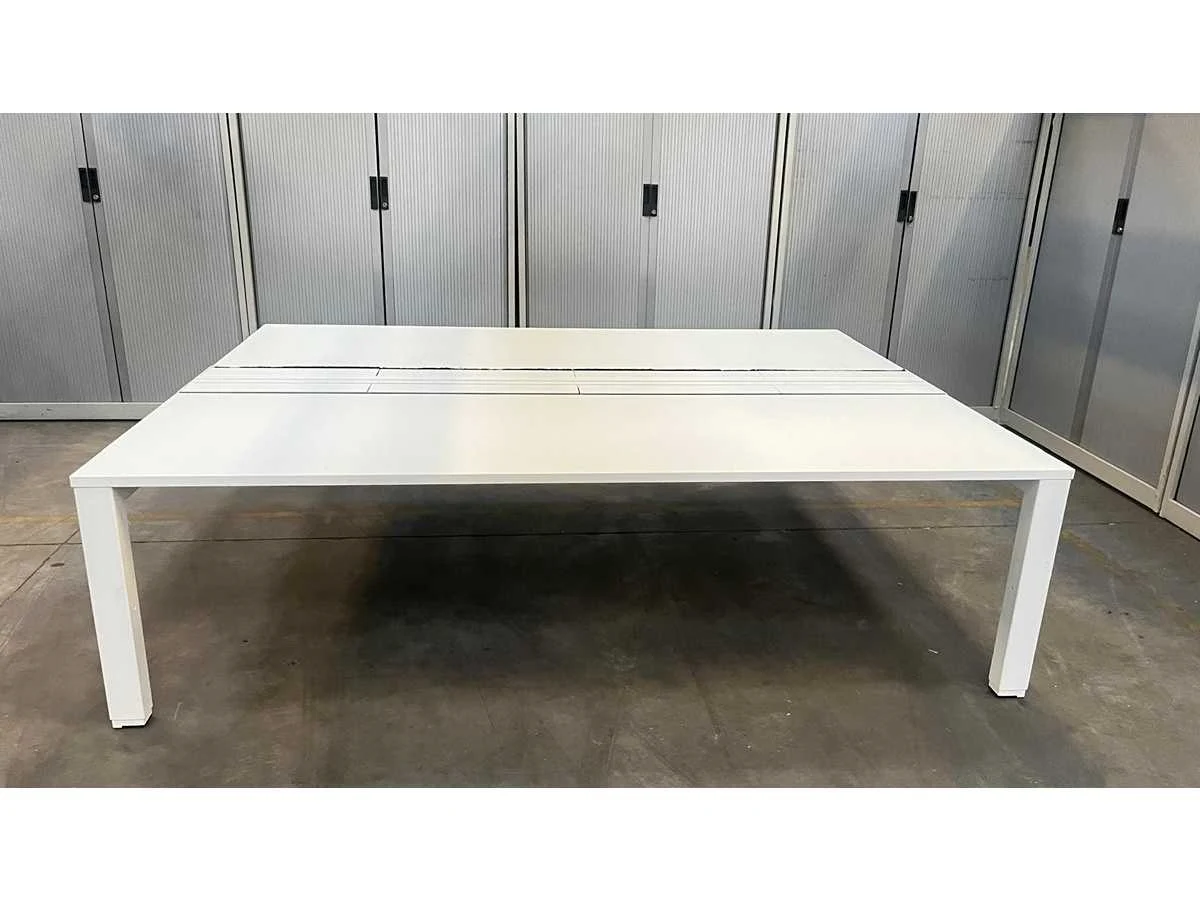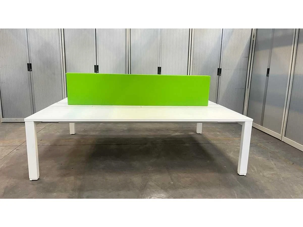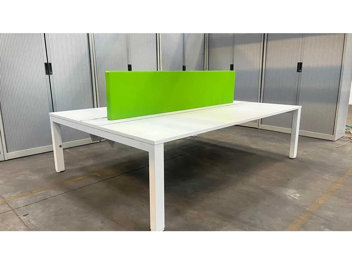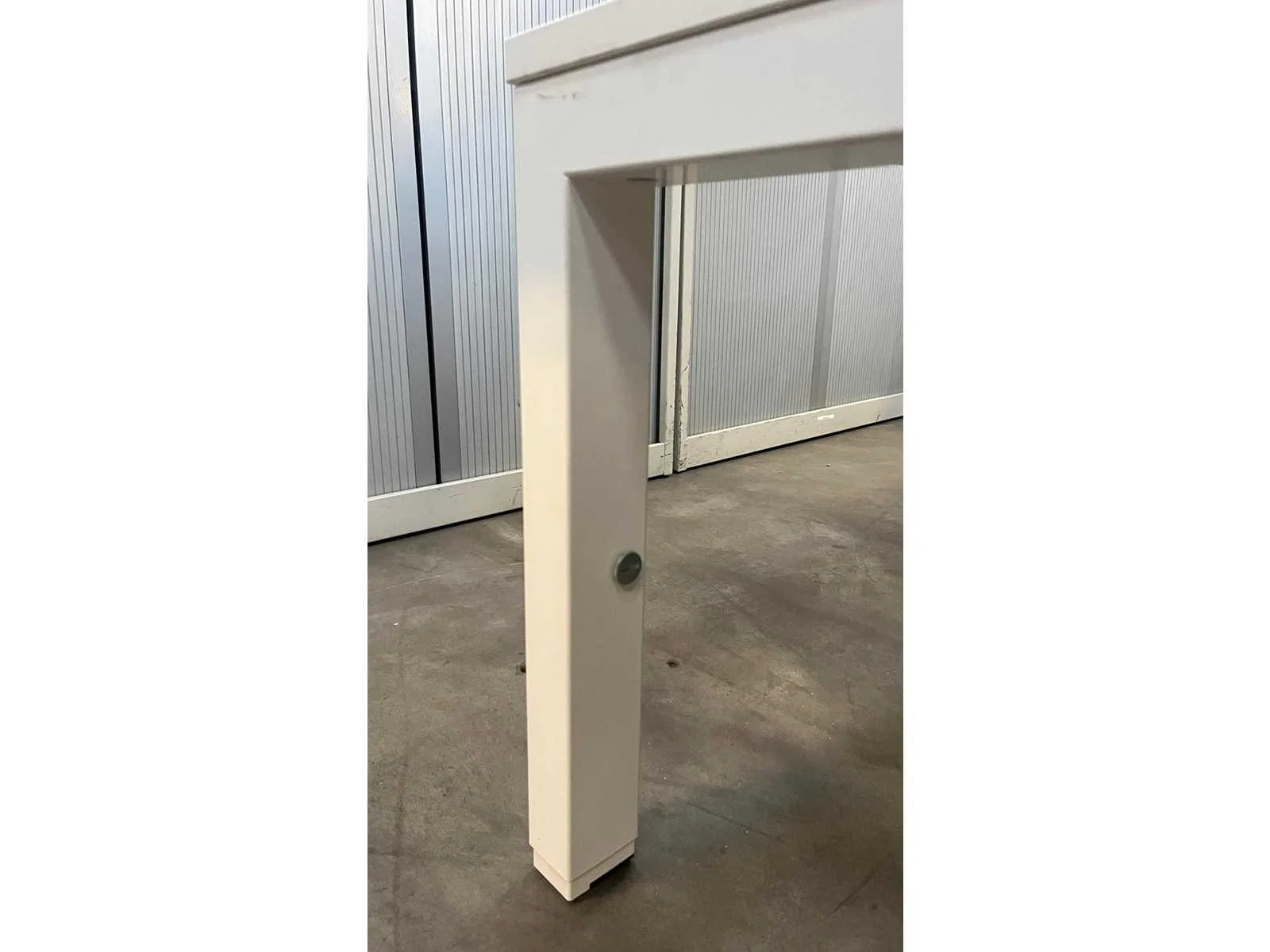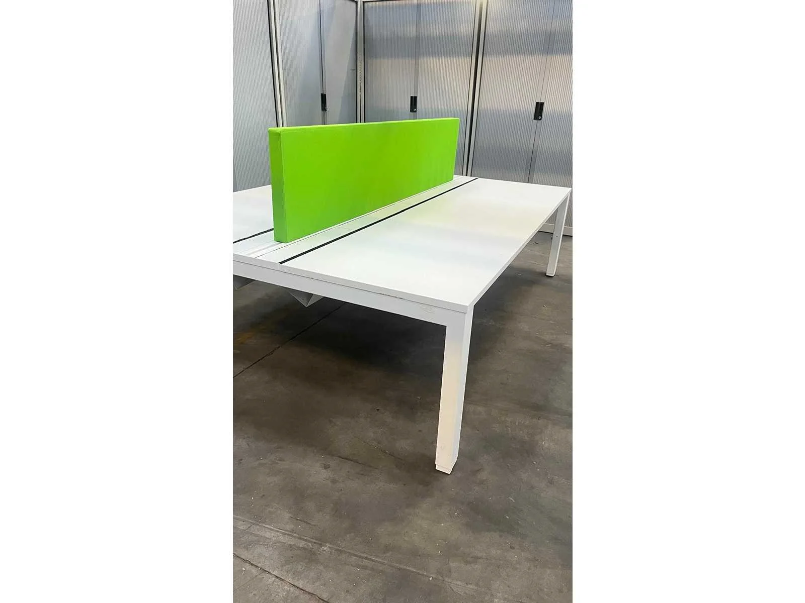 2/4-persoons werkplaats, inclusief groen paneel en kabelgoot. Tafel kan ook gebruikt worden zonder paneel en dienen als vergadertafel. Kleur blad wit/melamine, kleur onderstel wit/metaal, afm. L220 X D160 X H62-82 (manueel in te stellen), lichte gebruikssporen aanwezig Nee Merk: Robberechts Type: 2/4 p werkplaats Kleur: wit Gewicht: 100kg Breedte: 220cm Hoogte: 62-82cm Materiaal: melamine Diepte: 160cm