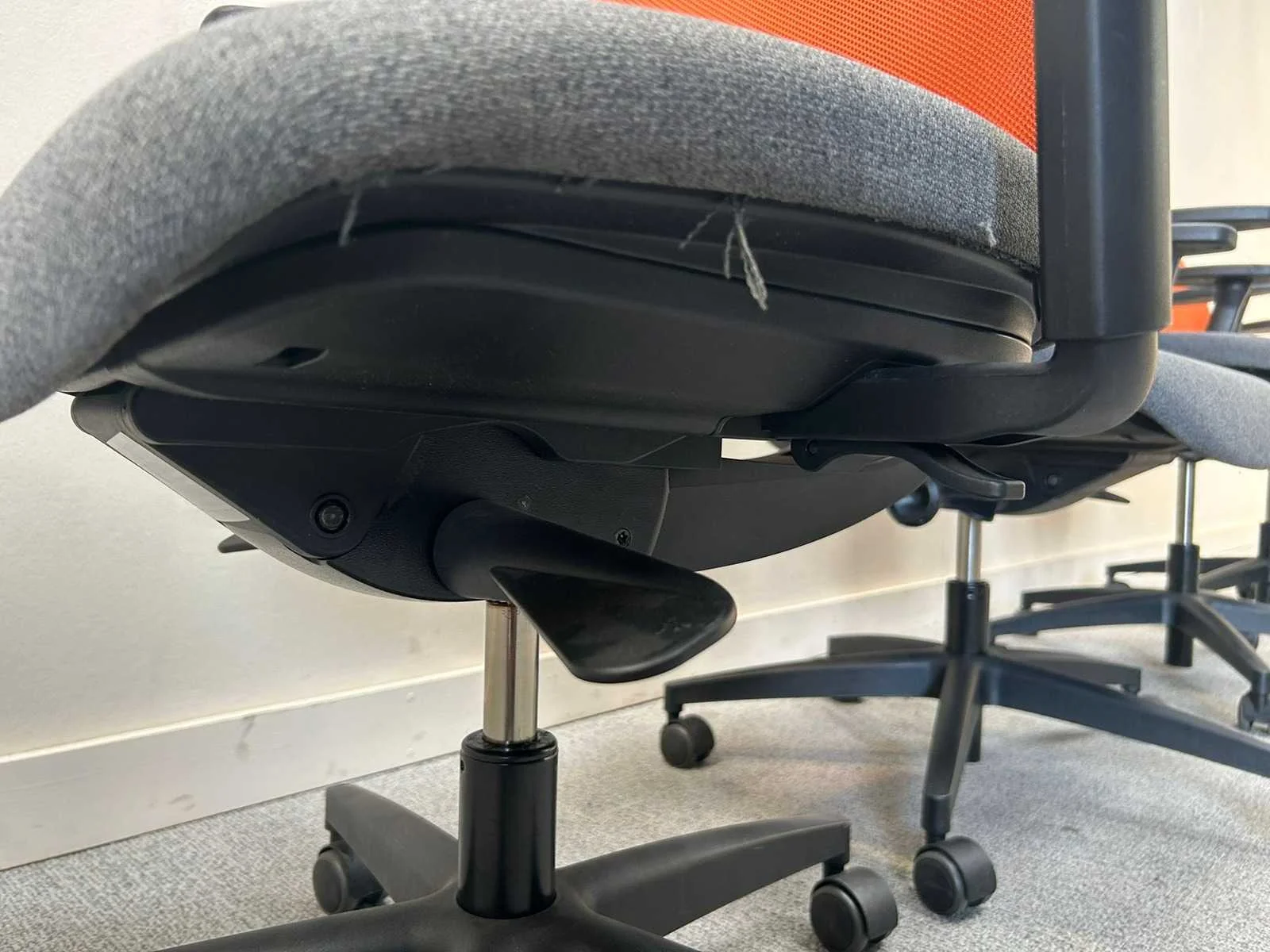 4x bureaustoel, GIROFLEX, type 353, sommige pompen werken niet zo goed, gebruikssporen mogelijk (V0301/V0303) Nee Merk: GIROFLEX Type: 353 Kleur: Oranje / Grijs Gewicht: 75kg Materiaal: Stof / Mesh