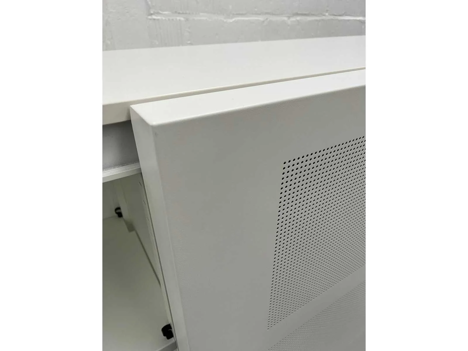 AHREND SDK Halfh Schuifdeurkast Akoestisch Dempend H118xB180xD50 - Wit melamine / Wit afmetingen H118 x B180 x D50, 3 legplanken per zijde, kleur frame wit, metaal, kleur topblad wit melamine, sleutel niet gegarandeerd. Gebruiksporen aanwezig oa verkleurde topblad, lichte deukjes, krassen Nee Merk: AHREND Type: Schuifdeurkast Model: SDK Kleur: Wit Gewicht: 50kg Aantal laden: 2 Breedte: 180cm Hoogte: 118cm Diepte: 50cm Materiaal: Melamine