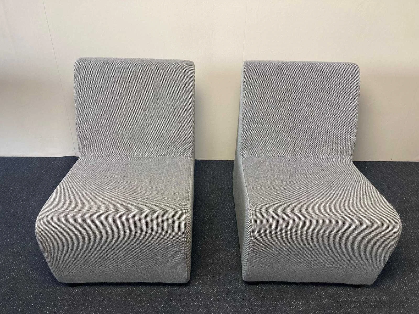 Grijze lage zitbanken , kleur grijs, textiel, gebruikssporen mogelijk No Product type: Lage Zitbank Kleur: Grijs Gewicht: 80kg Materiaal: Textiel