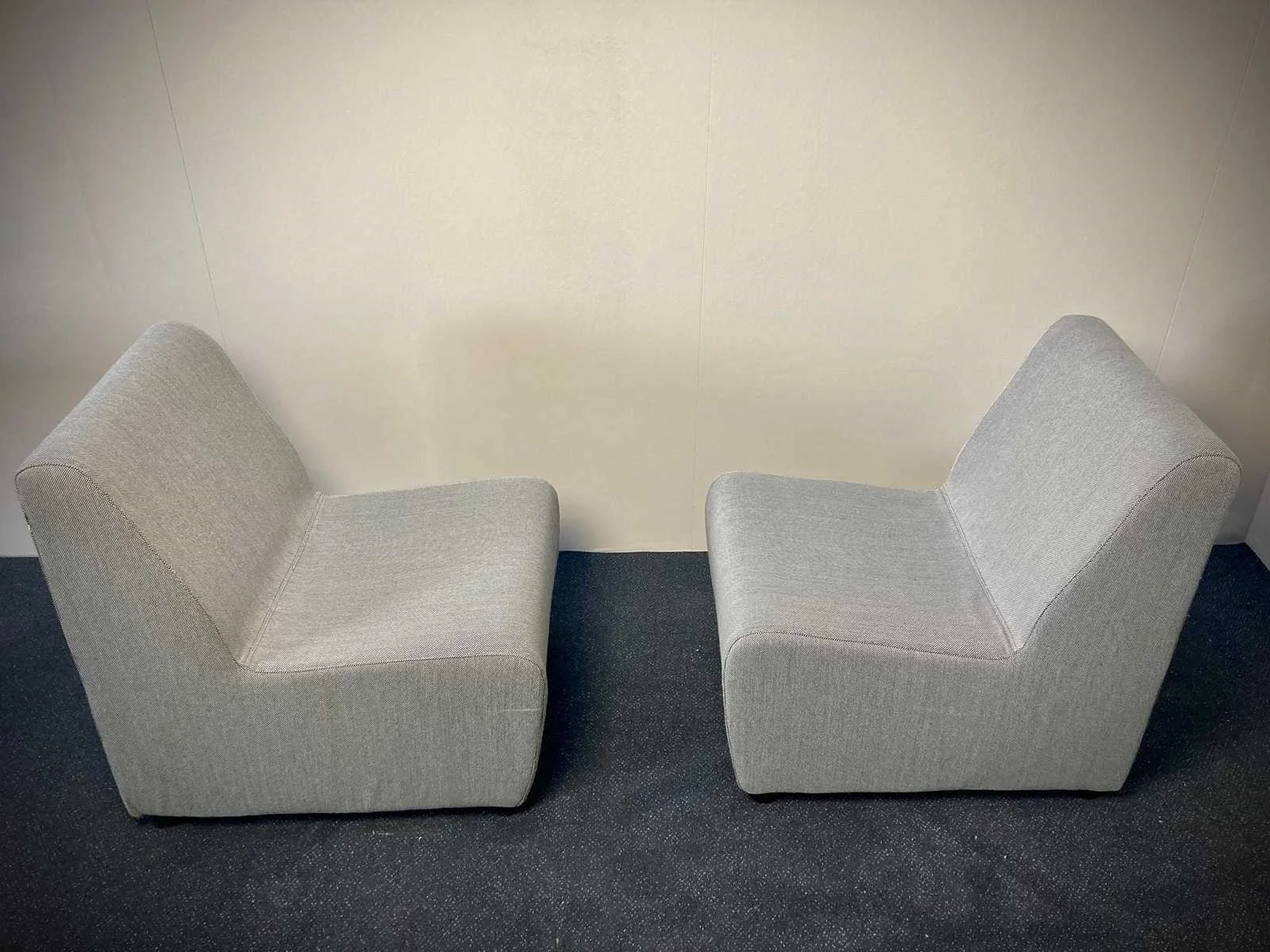 Grijze lage zitbanken , kleur grijs, textiel, gebruikssporen mogelijk Nee Product type: Lage Zitbank Kleur: Grijs Gewicht: 80kg Materiaal: Textiel