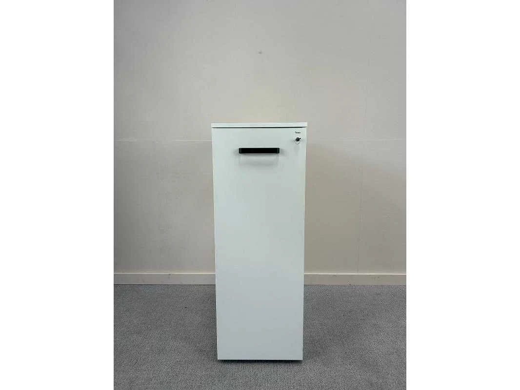 Design bureaukast, BENE, afm. H123xB45xD80, uitschuifbaar, sleutel niet gegarandeerd Nee Merk: BENE Type: Design Bureaukast Kleur: Wit Gewicht: 55kg Breedte: 45cm Hoogte: 123cm Materiaal: Melamine Diepte: 80cm