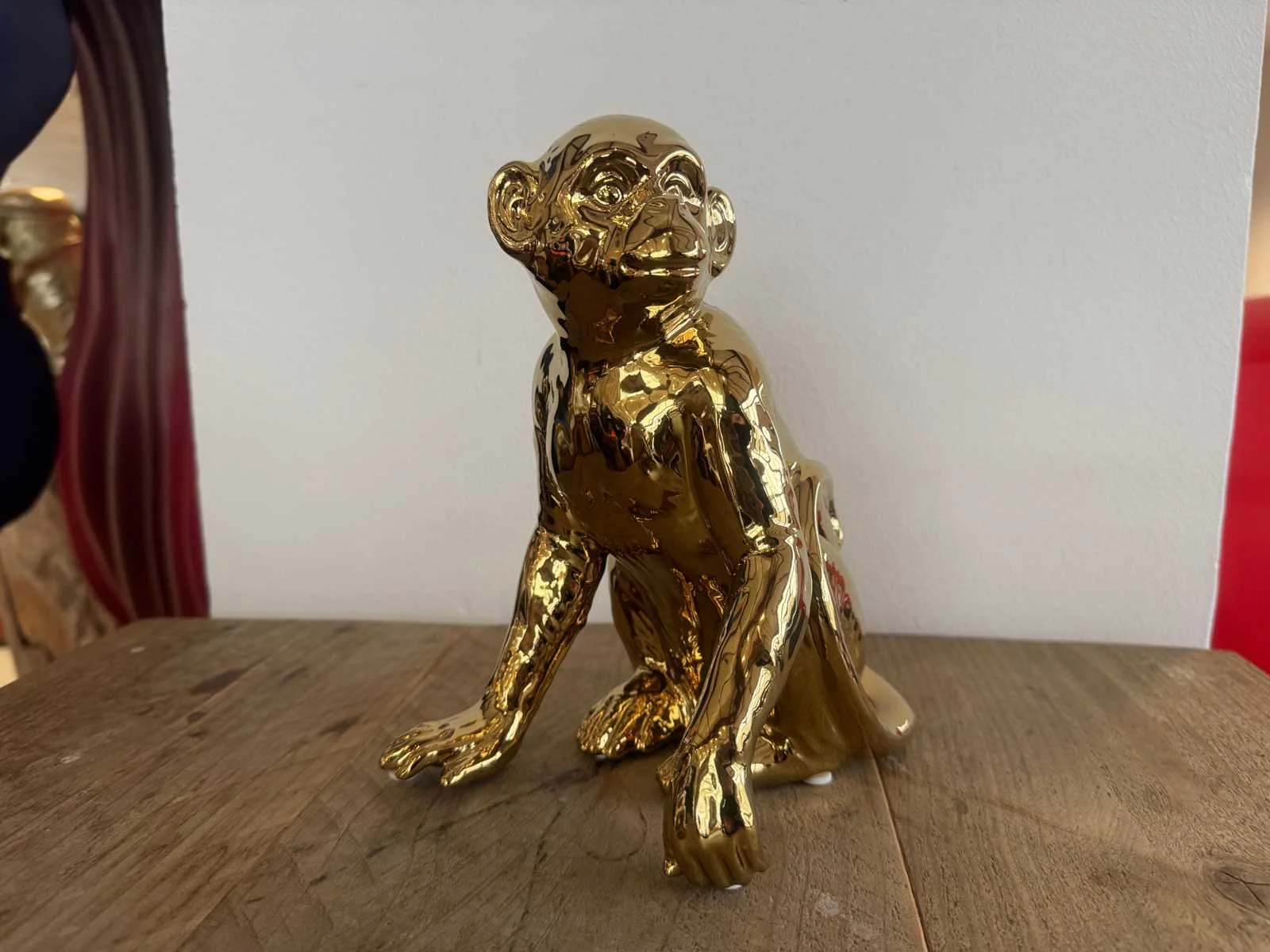 Aap / Monkey chrome gold H21cm No Hoogte: 21 Materiaal: Keramiek Leveringsvoorwaarden: Niet gefundeerd - onverpakt