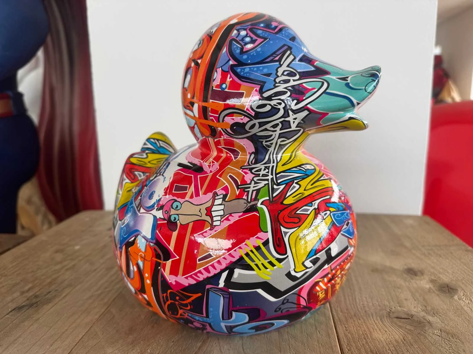 Eend / Duck Graffiti H24,5cm x L23cm Polystone / Polyester No Lengte: 23 Hoogte: 24,5 Materiaal: polyester Leveringsvoorwaarden: Niet gefundeerd - onverpakt