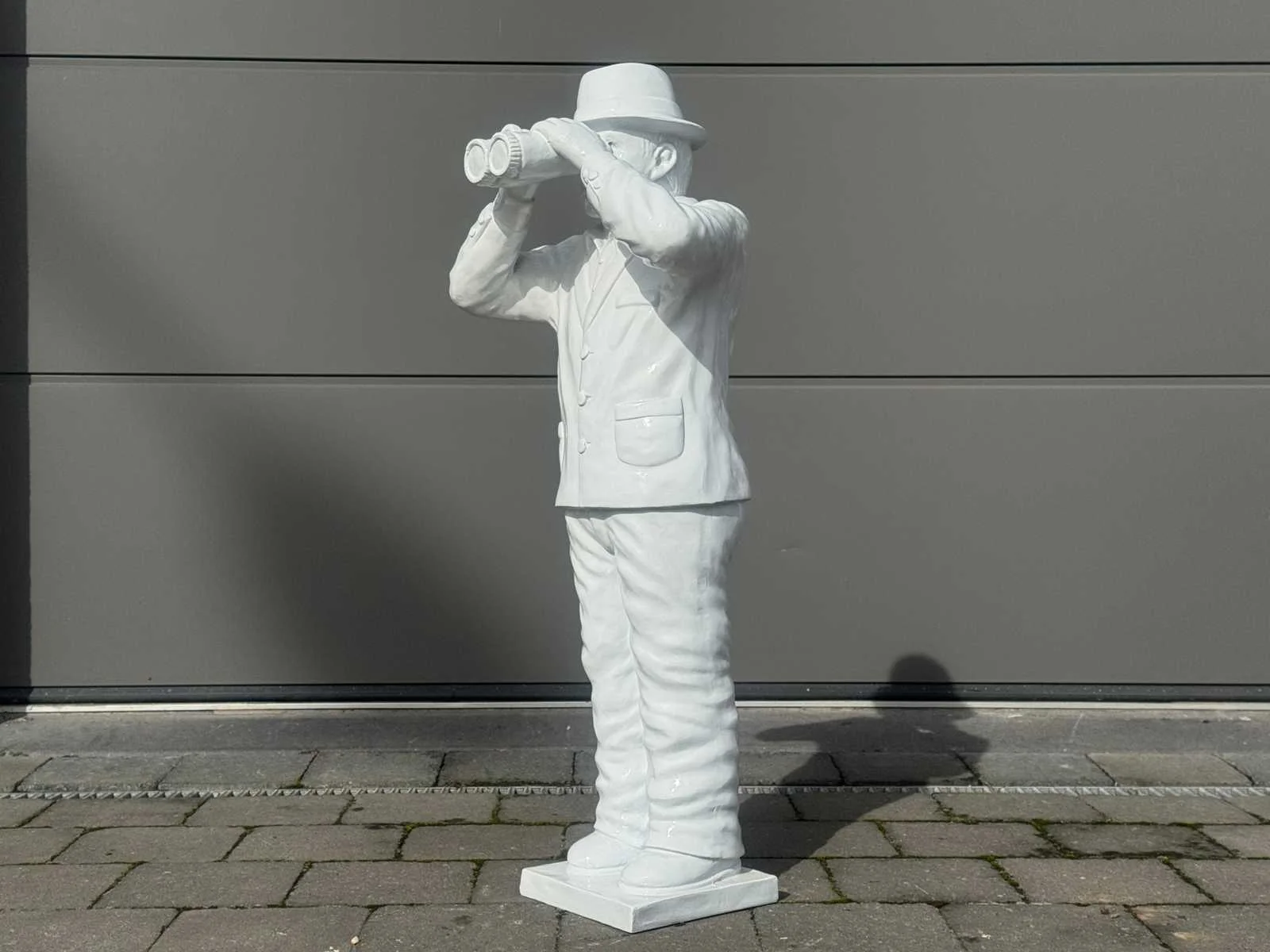 Man met Verrekijker Wit H90cm Polystone / Polyester No Hoogte: 90 Leveringsvoorwaarden: Niet gefundeerd - onverpakt