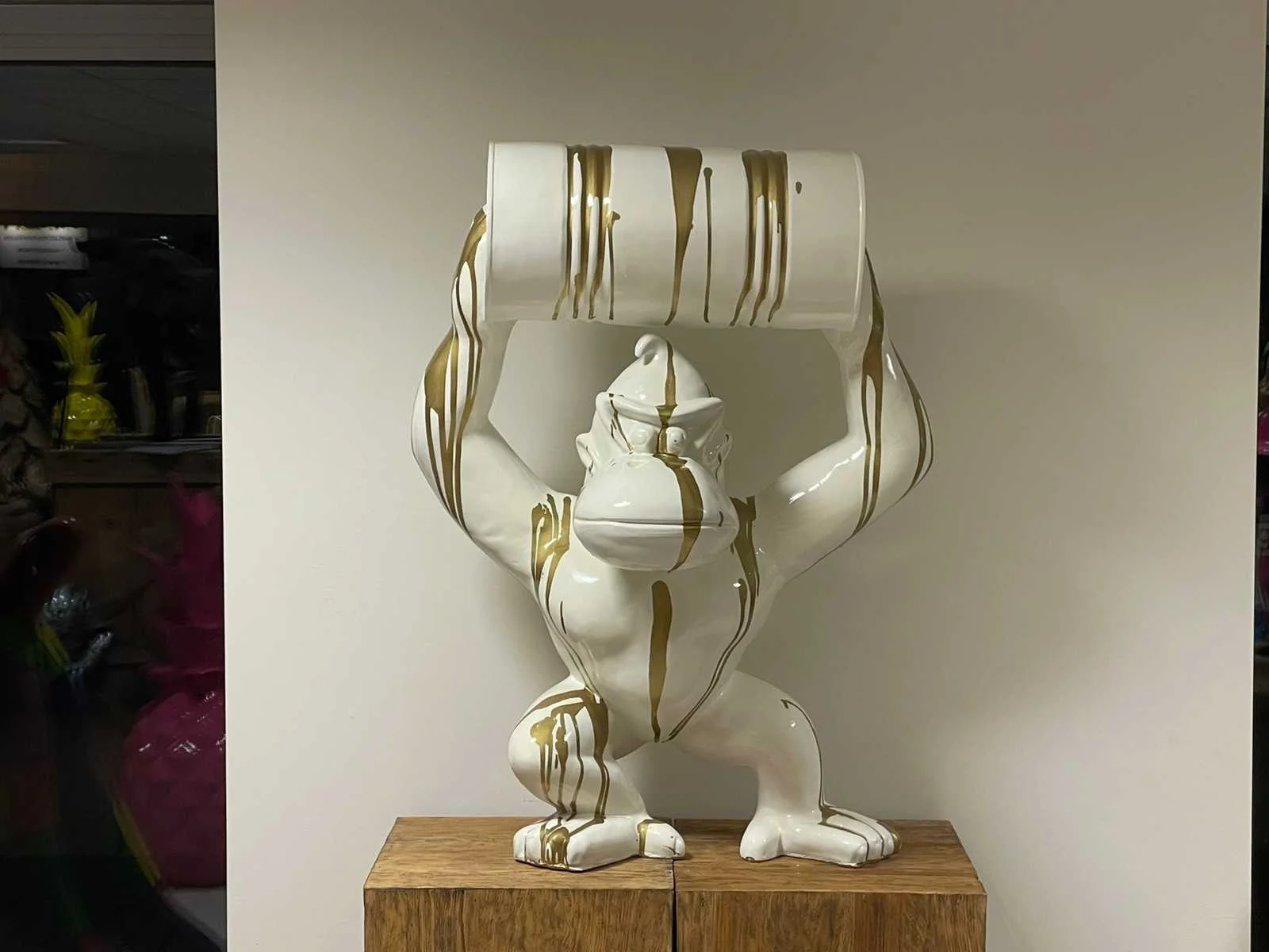 Donkey Kong met Ton Wit Trash Goud Hoogte 100cm Polyester No Hoogte: 100 Materiaal: Polyester Leveringsvoorwaarden: Niet gefundeerd - onverpakt