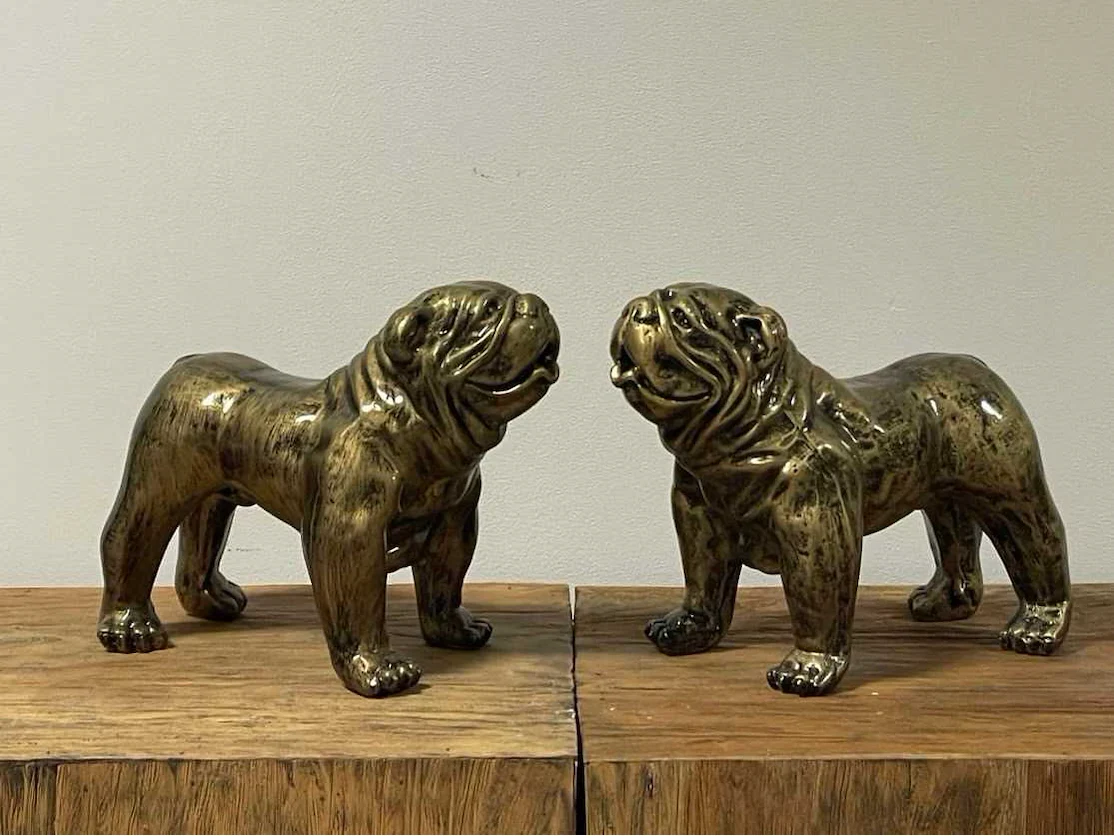 Set van 2 engelse bulldogs h24cm x l27cm old gold