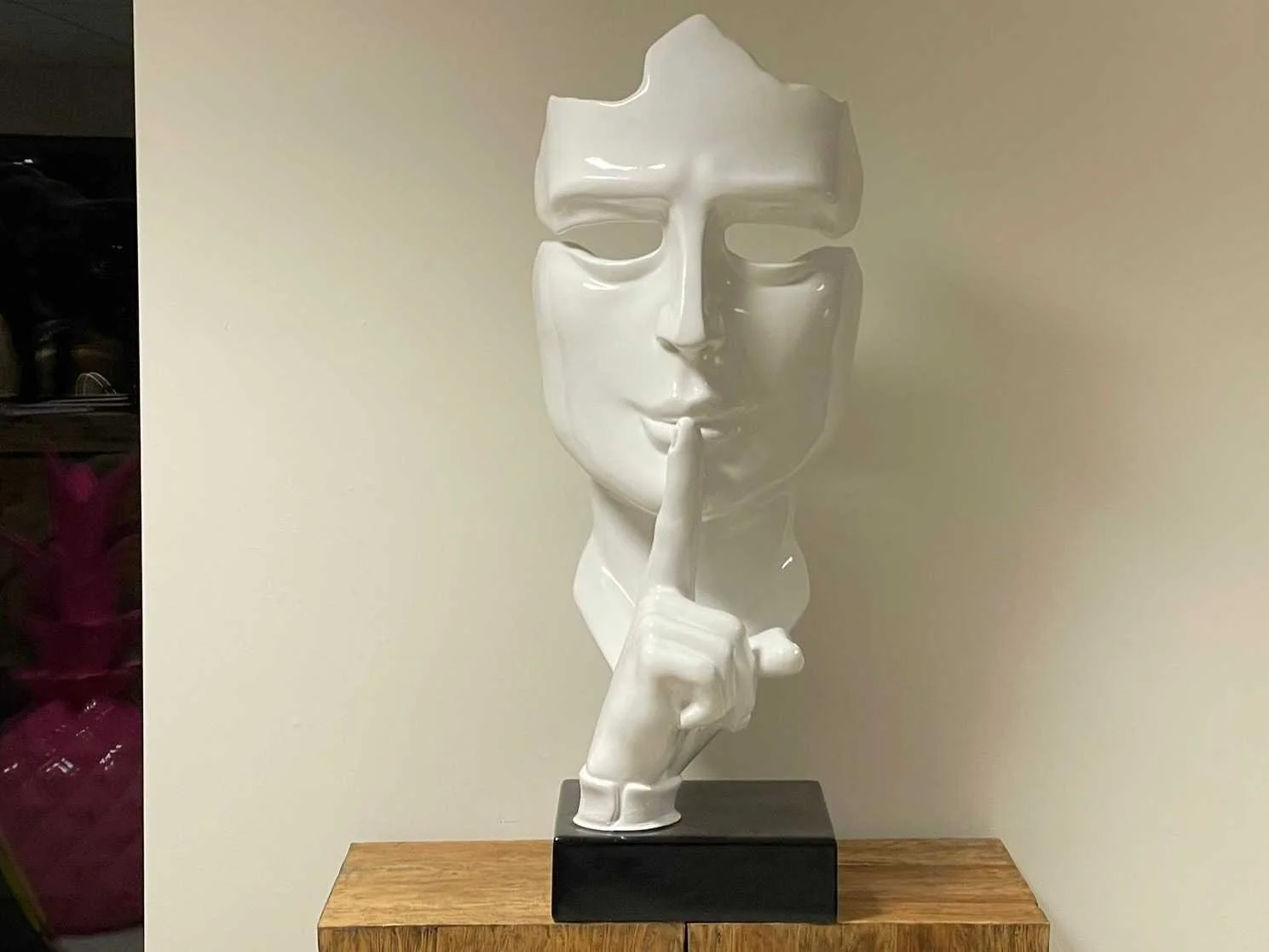 Ssssht H100cm Wit Gezicht van Stilte Polyester / Polystone No Hoogte: 100 Materiaal: Polyester Leveringsvoorwaarden: Niet gefundeerd - onverpakt