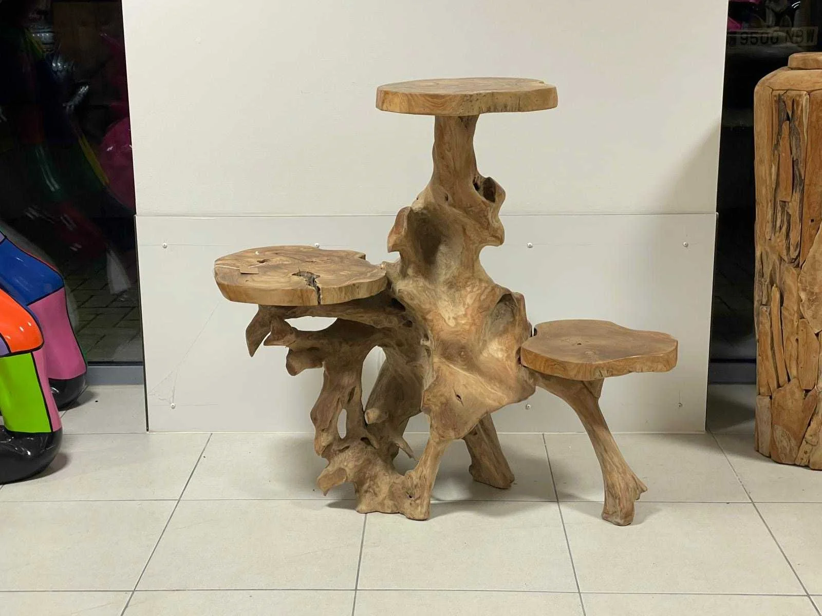 Treeplanter met 3 plateau's H100cm x L110cm No Lengte: 110 Hoogte: 100 Materiaal: Root Wood Leveringsvoorwaarden: Niet gefundeerd - onverpakt