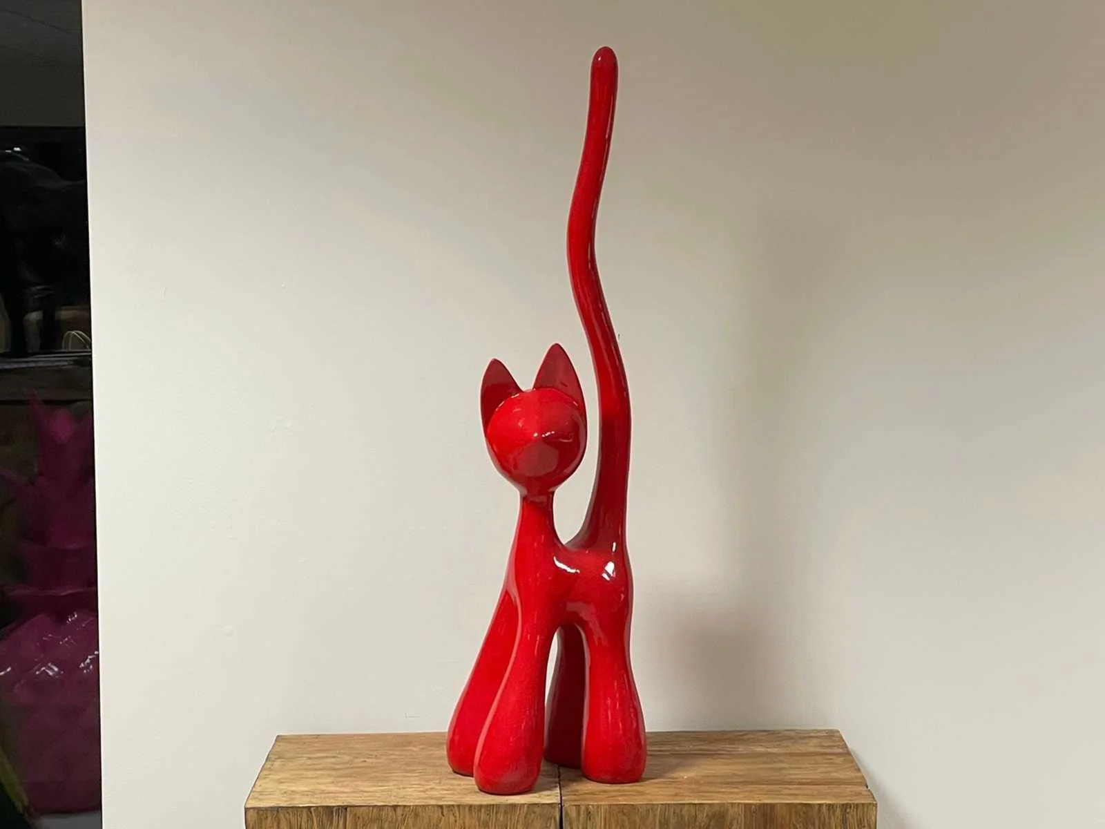 Cat / Kat met lange staart Red Hoogte 100cm Polyester / Polystone No Lengte: 52 Hoogte: 100 Leveringsvoorwaarden: Niet gefundeerd - onverpakt