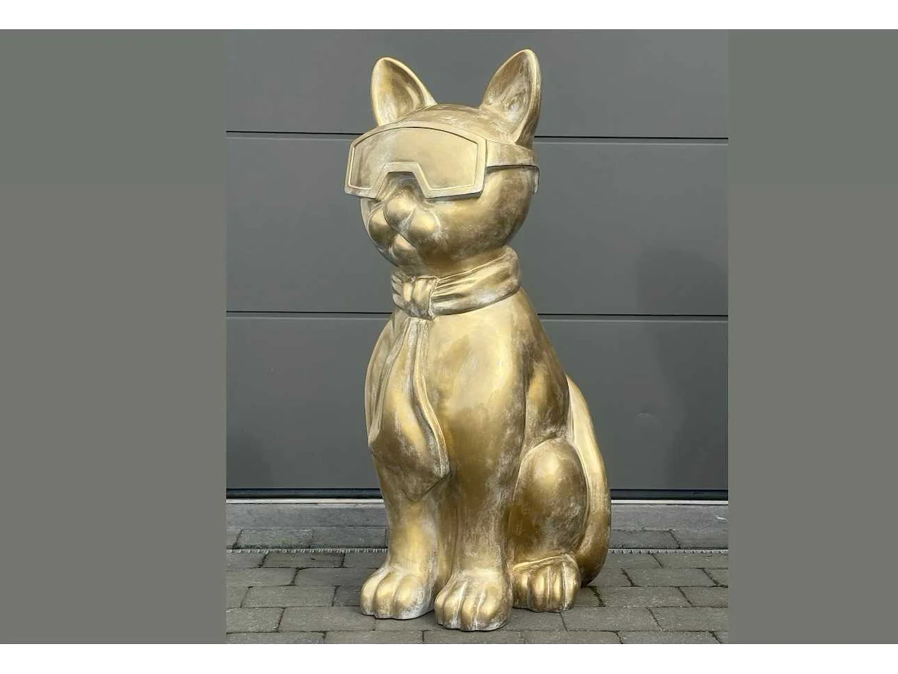 Cat / Kat met bril Old Goldwit H120cm Polyester / Polystone No Hoogte: 120 Materiaal: Polyester Leveringsvoorwaarden: Niet gefundeerd - onverpakt