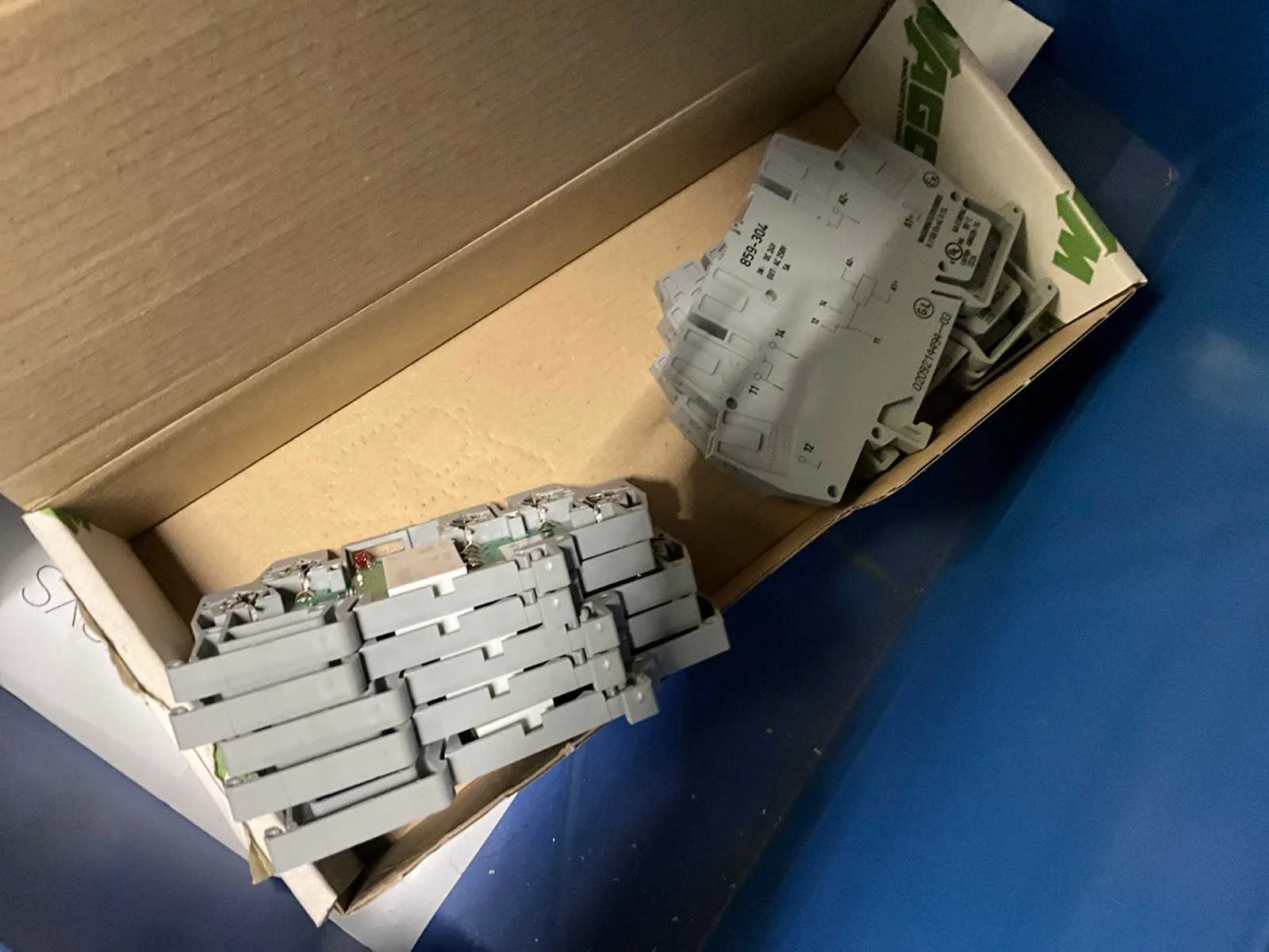 Grote partij diverse onderdelen - zie foto’s partij bestaat uit: diverse automaten, onderdelen, railgeleiders Nee Merk: Wago / Owis