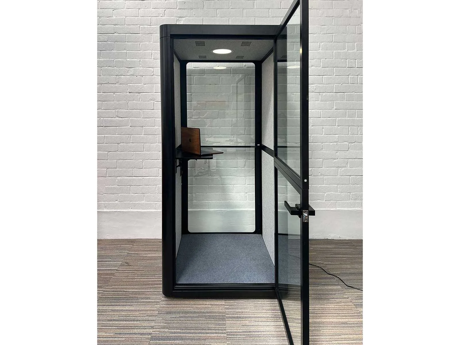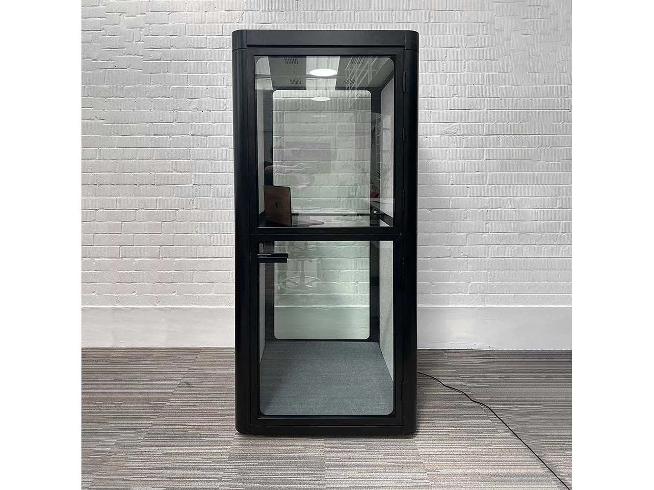De POD belcel / phone booth laat je met zijn geluidsdemping van 25dB toe om in rust te bellen en overleggen in een drukke omgeving. De dakventilatie zorgt voor een optimale verluchting en de dimbare ledverlichting is geoptimaliseerd voor videocalls. Het ingebouwde uitklapbare tafeltje geeft ruimte voor uw laptop, smartphone en koffie en met 3 oplaadpoorten (USB-C, USB3 en stopcontact) vlakbij kom je nooit zonder opgeladen batterij te zitten. De belcel wordt ingeklapt geleverd en zet zich zelf elektrisch op de juiste hoogte. Specificaties Max gewicht: 130kg Voltage: 100v-240v Geluidsisolatie: 25dB Afmetingen tafelblad: 680x350mm 1x USB-C, 1x USB3, 1x stopcontact Afmetingen Afmetingen Binnenzijde: Breedte: 89 cm Diepte: 93 cm Hoogte: 205 cm Afmetingen Buitenzijde: Breedte: 102 cm Diepte: 102 cm Hoogte: 226 cm Eigenschappen Gemakkelijker Ademen: Geruisloze, verstelbare ventilatie garandeert verse lucht. Geluidsdicht: houdt lawaai buiten en private gesprekken binnen met een geluidsreductie van 25dB Ingebouwd Opklapbaar Tafelblad 680x350mm : houdt gemakkelijk je laptop, koffie en notitieboekjes. Handig Opladen: voorzien van USB-C, USB3 en gewoon stopcontact, zorgt ervoor dat je apparaten altijd opgeladen en klaar voor gebruik zijn. Dimbare LED Verlichting: Geoptimaliseerd voor videogesprekken. Nee Type: BELCEL Model: POD01 Kleur: zwart Gewicht: 120kg Lengte: 102cm Breedte: 102cm Hoogte: 226cm Materiaal: vilt