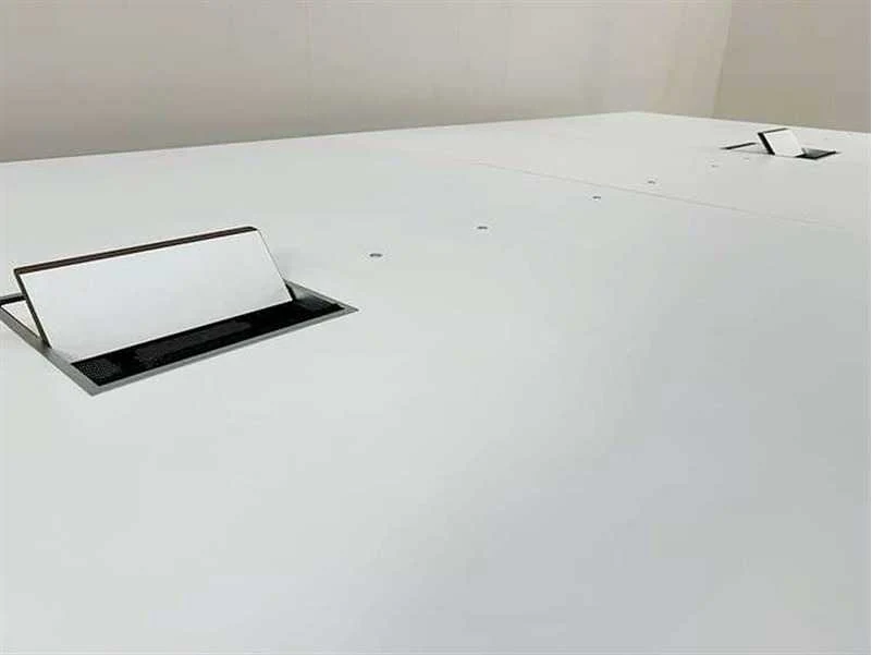 BULO H20 4p workbench, afm. B360xD180xH75, wit melamine bovenblad, metalen poten, lichte gebruikssporen Nee Merk: Bulo Type: 4 persoons workbench Model: H2O Kleur: wit Gewicht: 80kg Lengte: 360cm Breedte: 180cm Materiaal: melamine