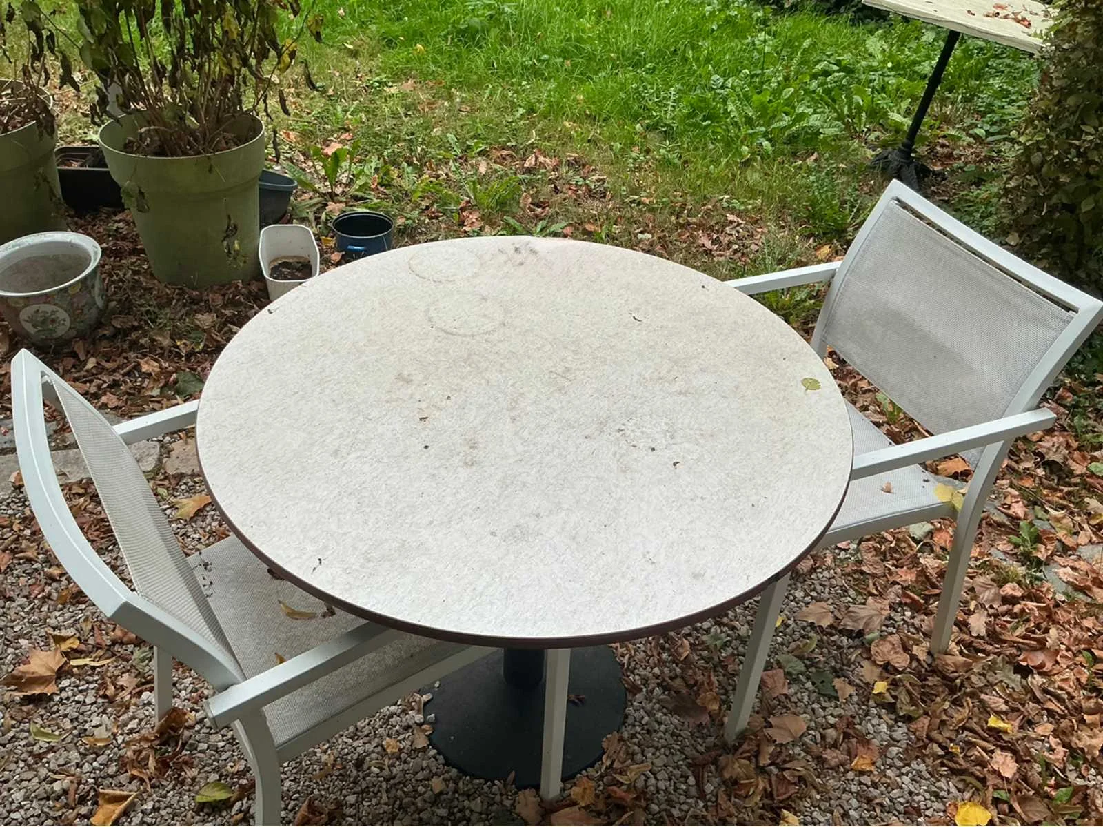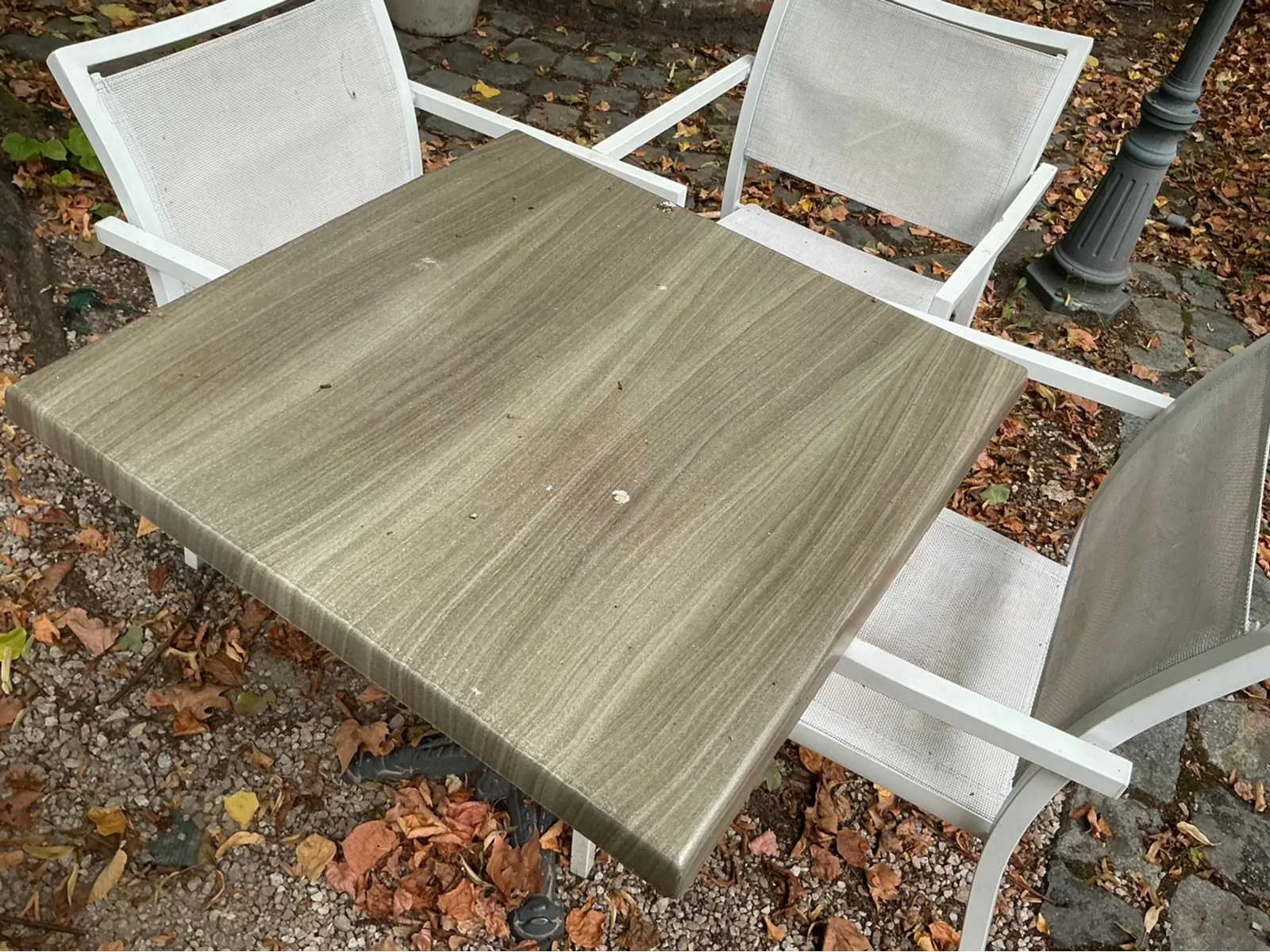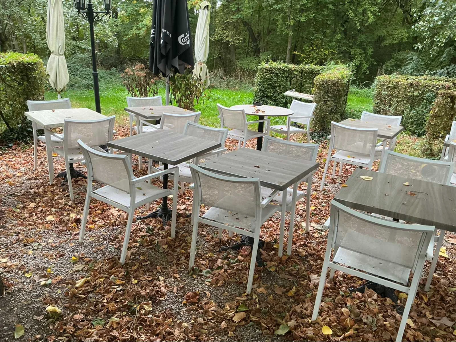 18 terrastafels in goede staat en 1 ronde terrastafel in goede staat. Nee