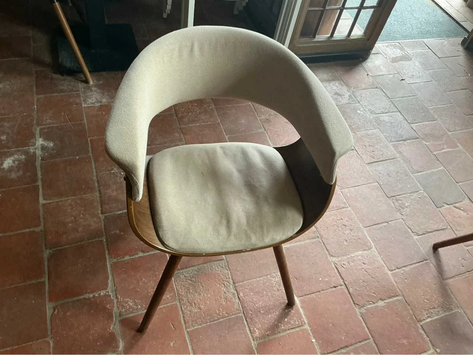 20 beige kuipstoelen in perfecte en gebruikte staat, steeds binnen gestaan. Nee