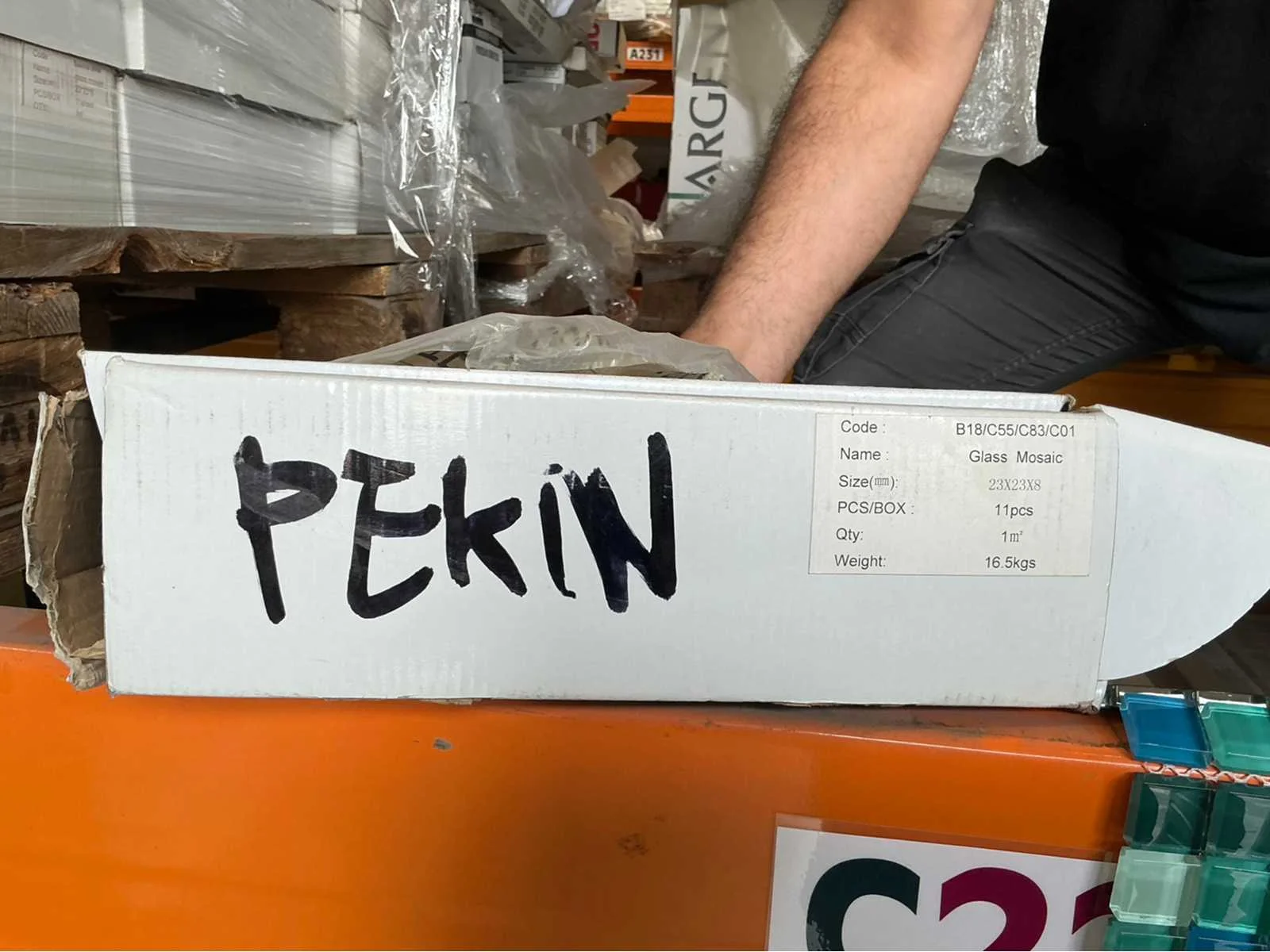 Nee Kleur: Blauw Lengte: 23cm Breedte: 23cm Materiaal: Glass Mosaïc Dikte: 8mm Aantal m² per verpakking: 1m² Aantal pakken: 8 Totaal oppervlakte: 8m² Totaal gewicht: 16500g