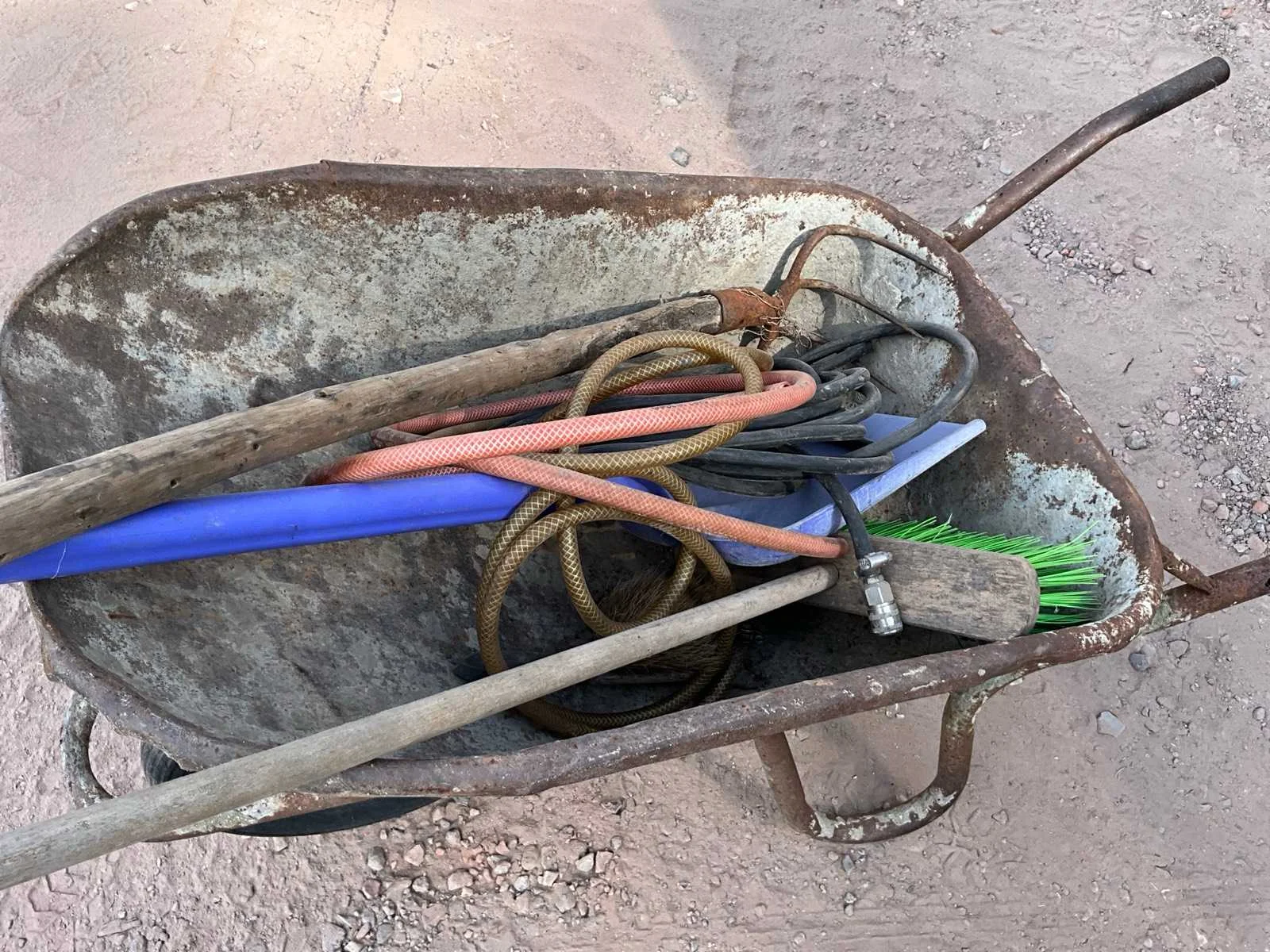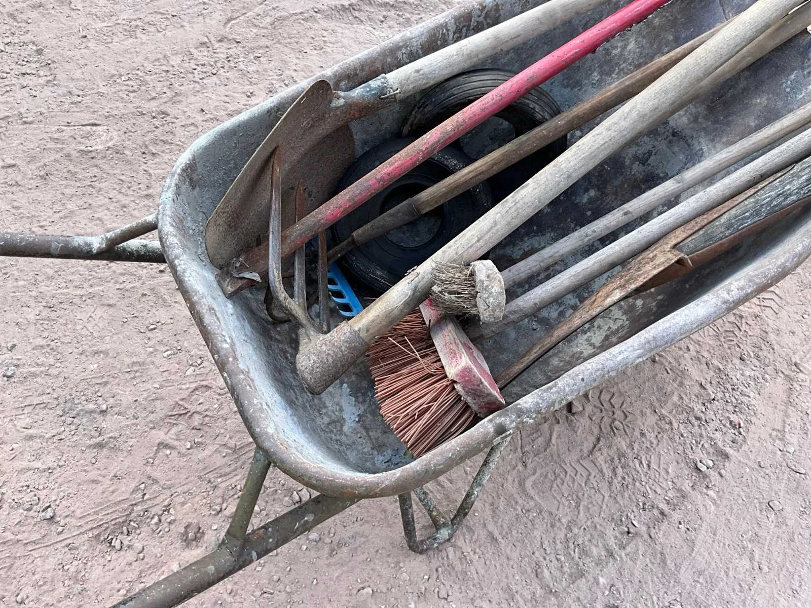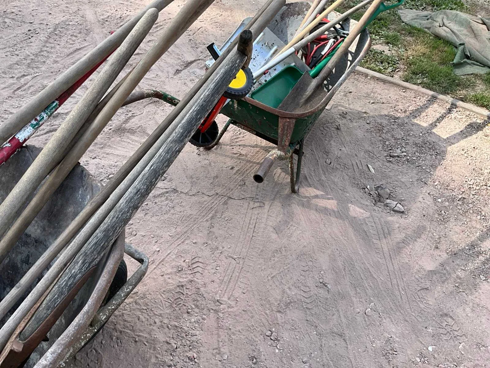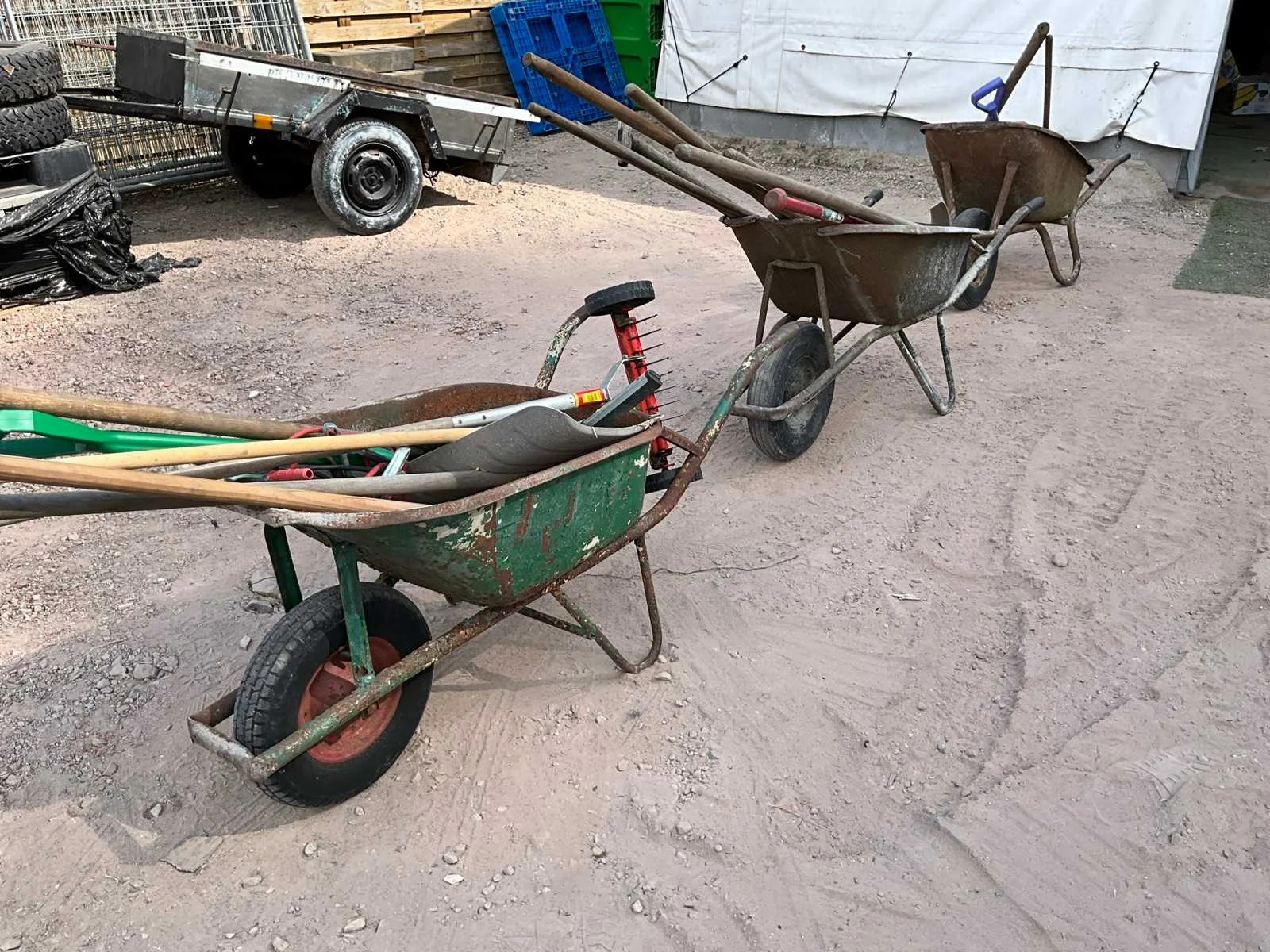 Allerlei tuinbenodigheden met 3 kruiwagens inclusief Nee