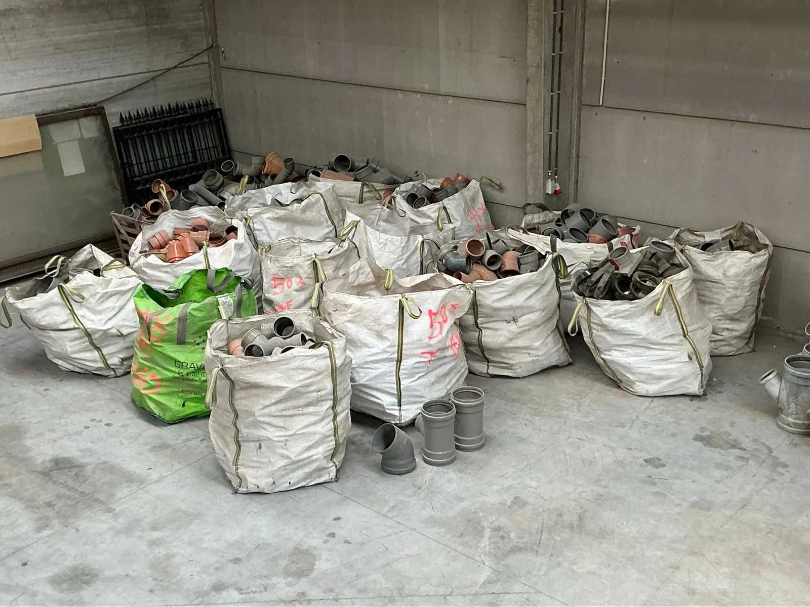 100x Mof 160mm 50x bocht 160mm 200x koppelstuk pvc 41 x T / Y / koppelstukken mix 160mm 10x doorschuifmof 18x enkel mof 30x dubbelmof 45graden 37x enkelmof 45graden 100x T stuk 160mm Bigbag rubber dichtingen varia Bigbag varia koppelstukken 200mm Bigbag reducties pvc 100x verloopstuk 50x enkelmof 90graden 50x T stuk 3 houten boxen varia pvc stukken Nee