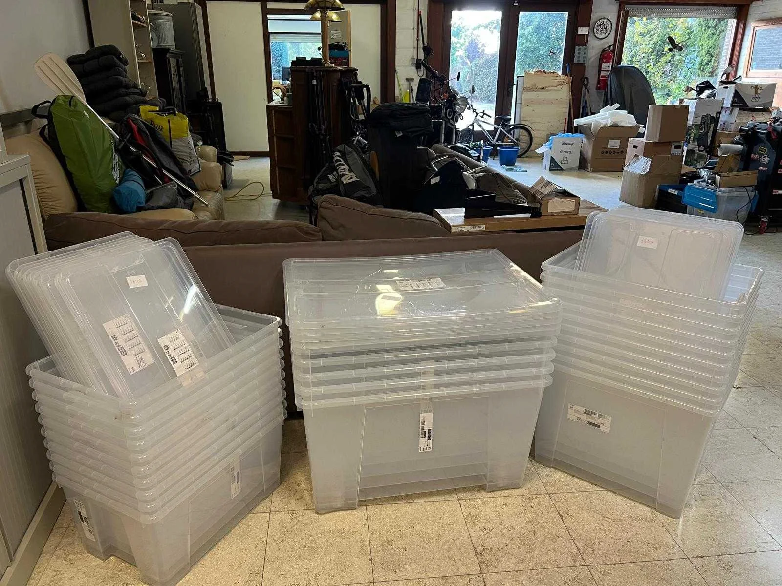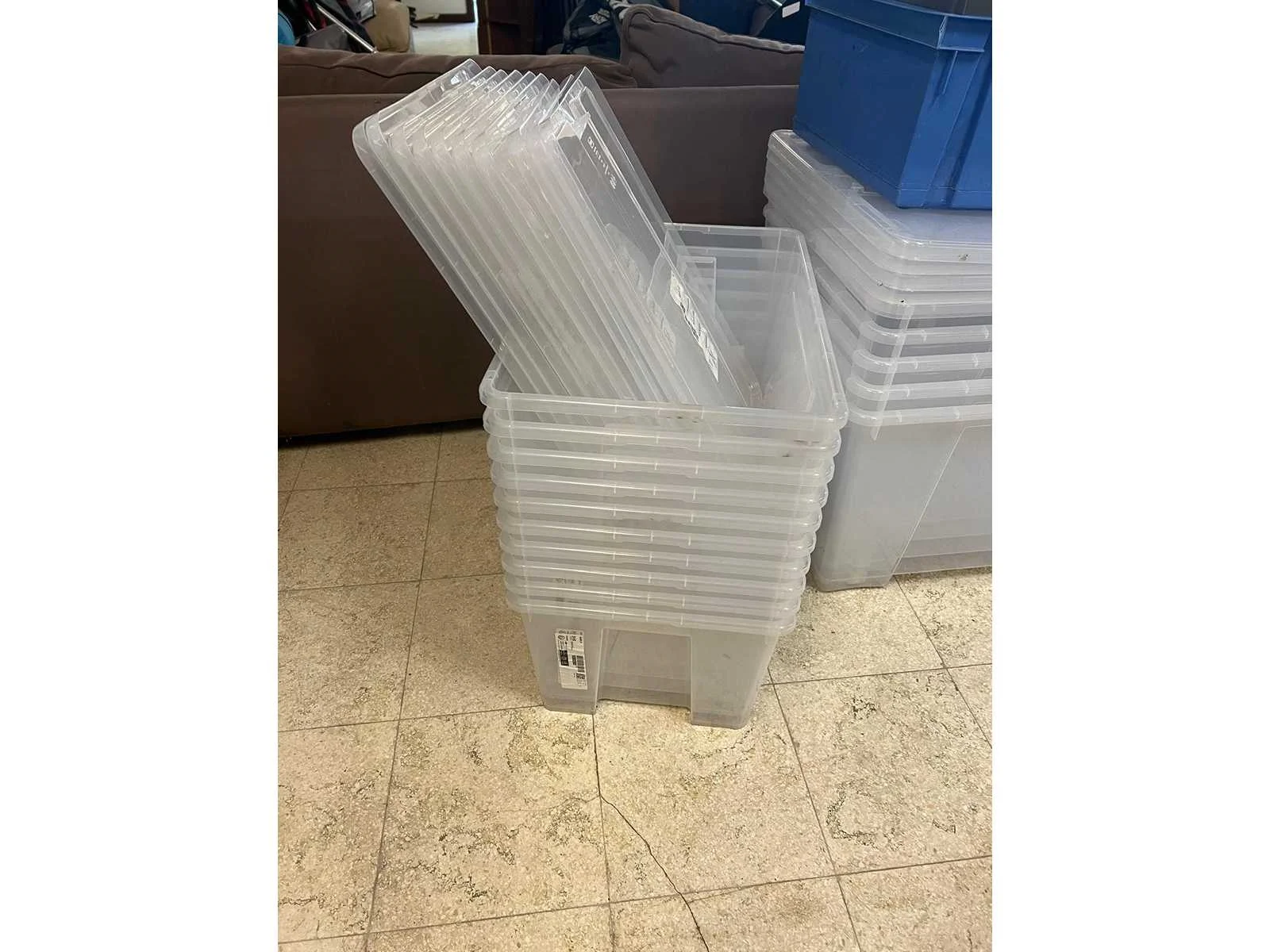 Afmetingen bakken Samla: - 10x 56x39x42 (65l) + deksels - 10x 56x39x28 (45l) + deksels - 5x 78x56x43 (130l) + deksels Nee Merk: IKEA Kunststof: true