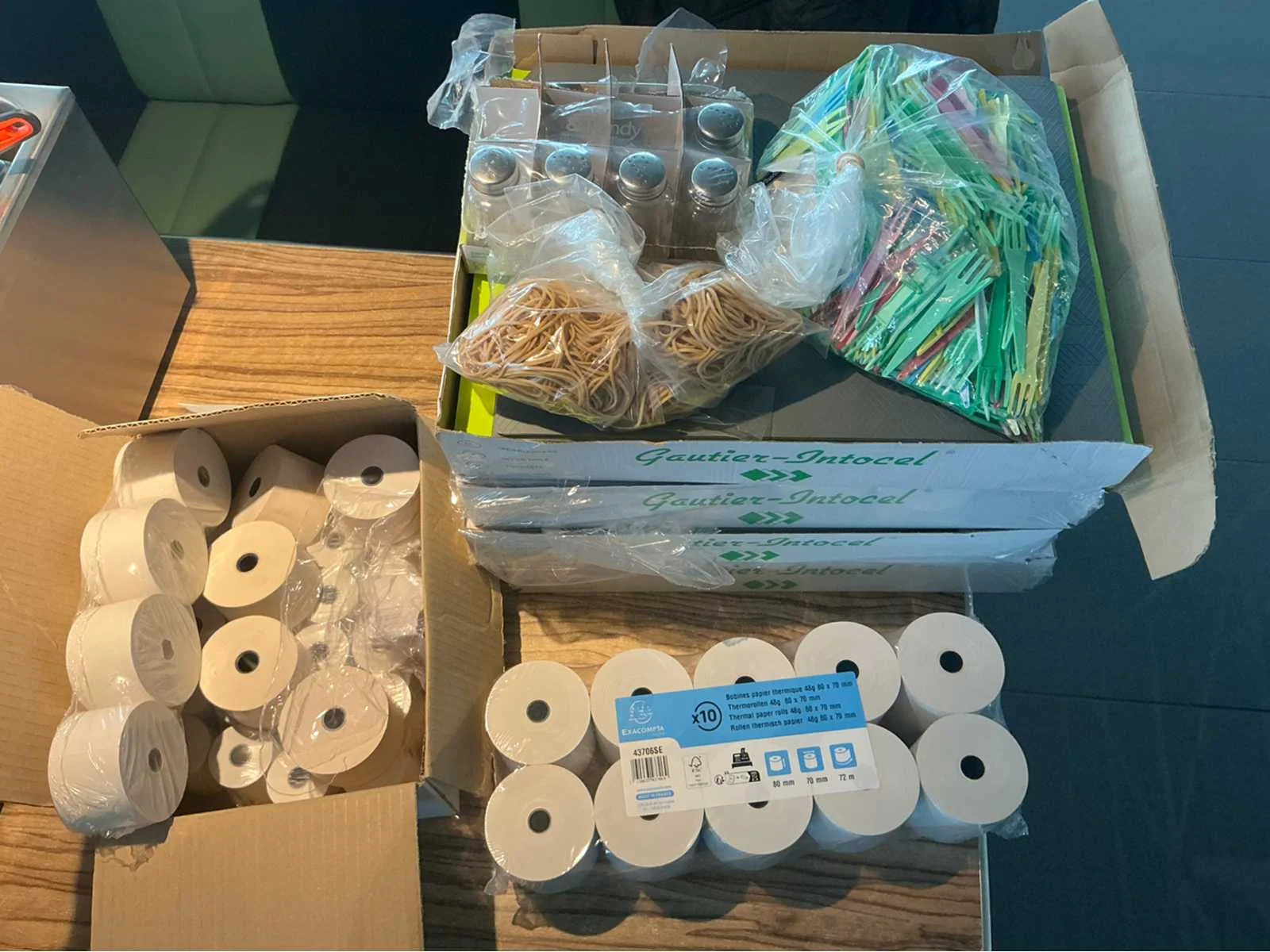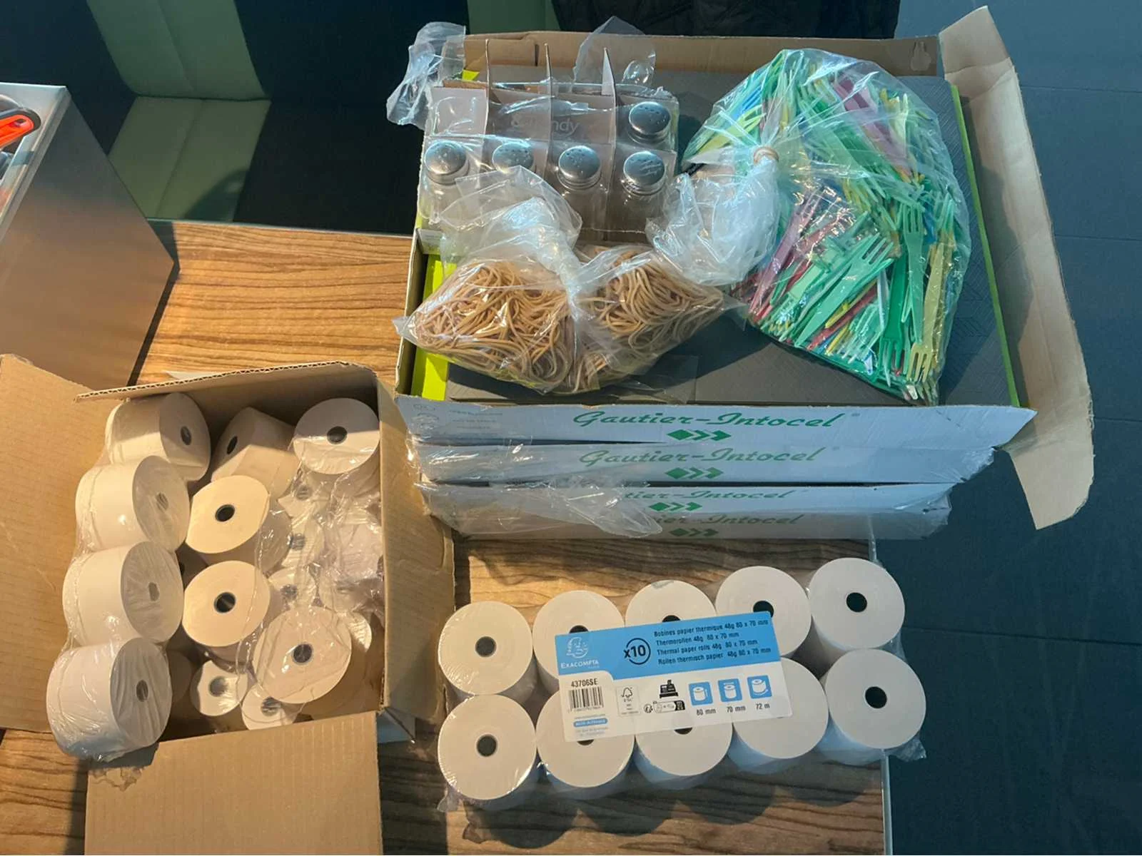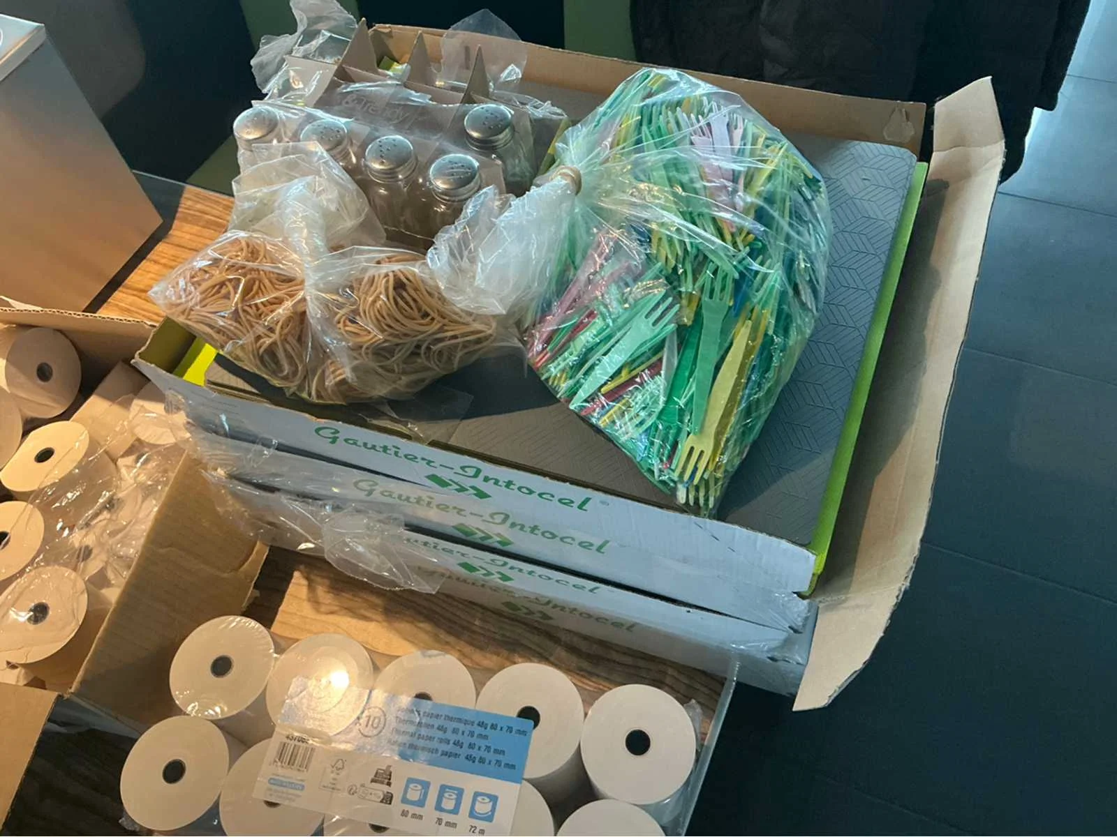 Lot kassarollen, kleurplaten en onderleggers restaurantinrichting