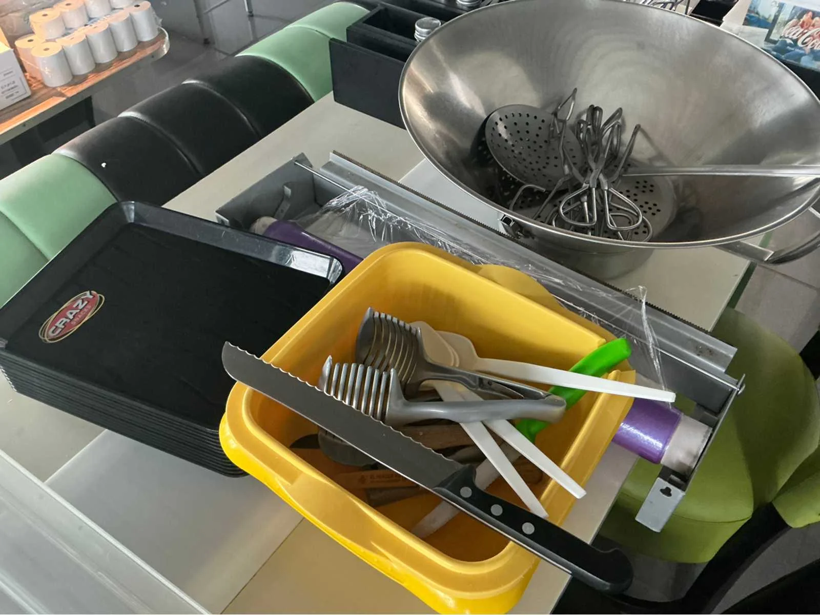 Lot klein materiaal, fritpot, foliehouder overige restaurantinrichting