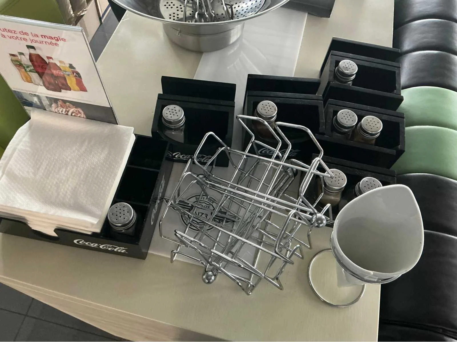 Lot coca cola kaart en zout en pepervatjes houder overige restaurantinrichting