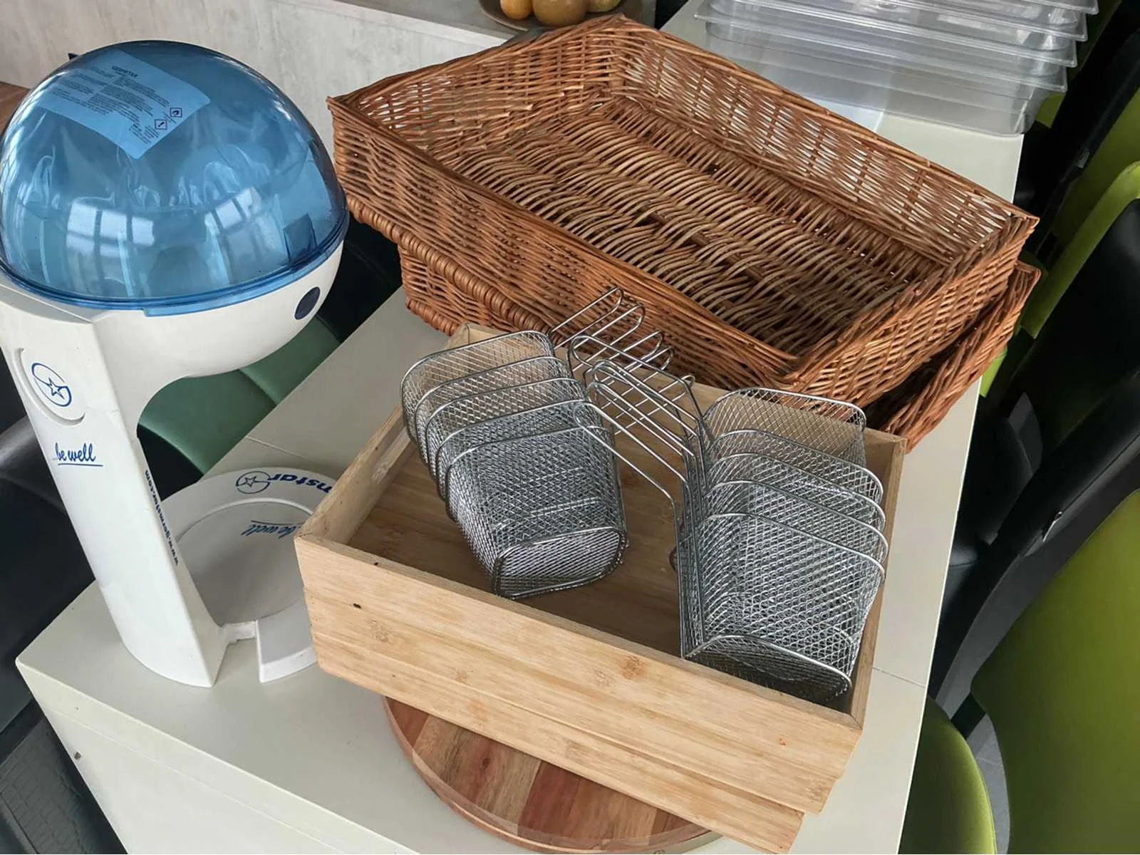 Handontsmetter, manden, kommen en pvc bakken overige restaurantinrichting