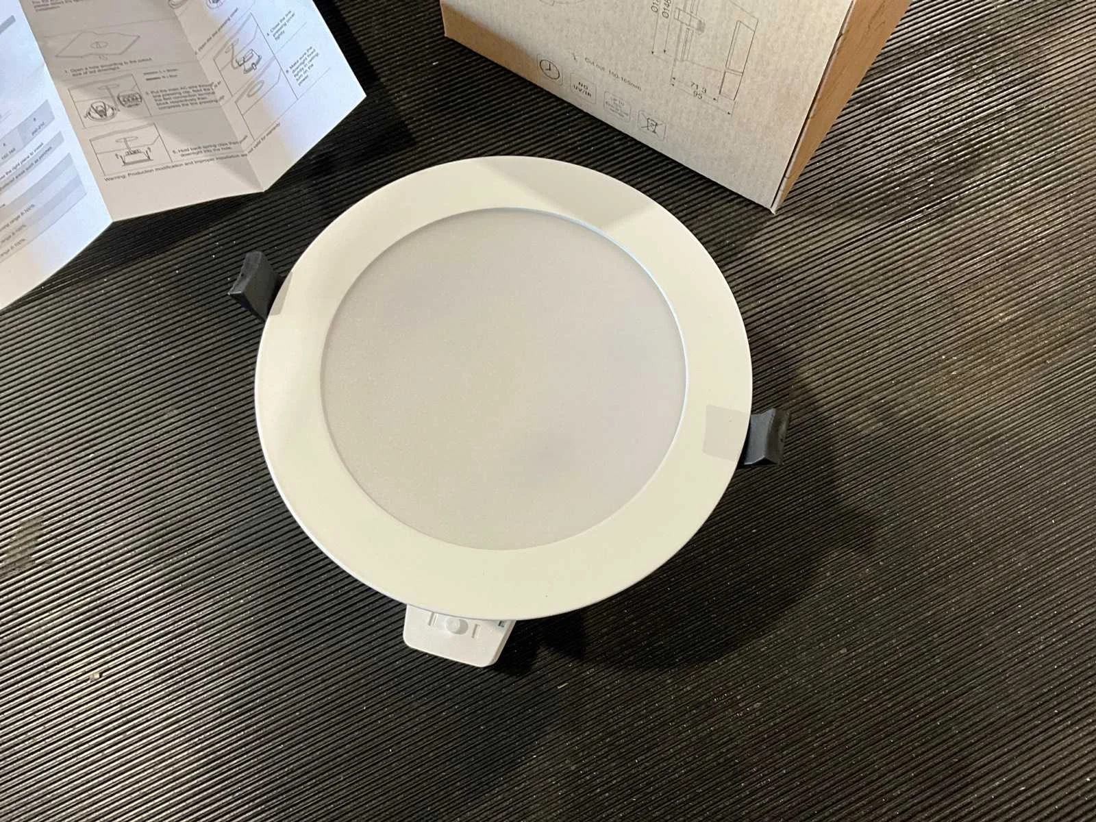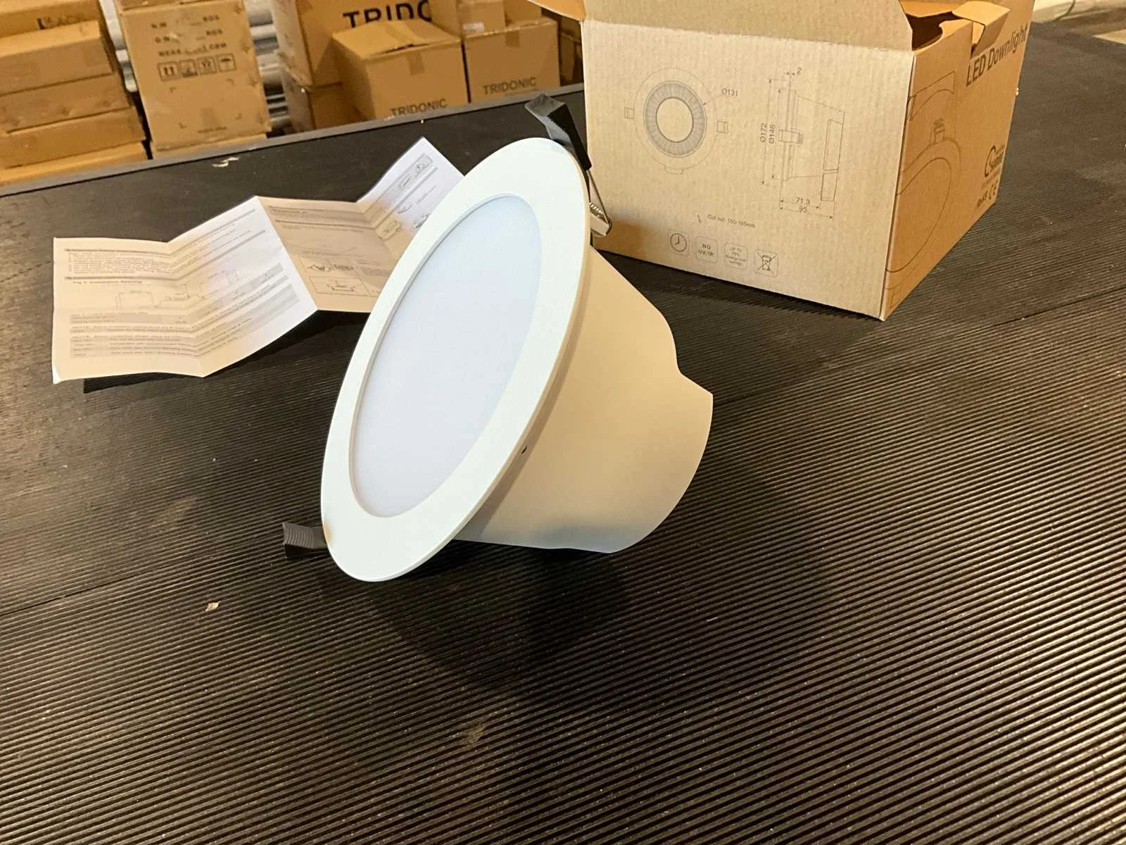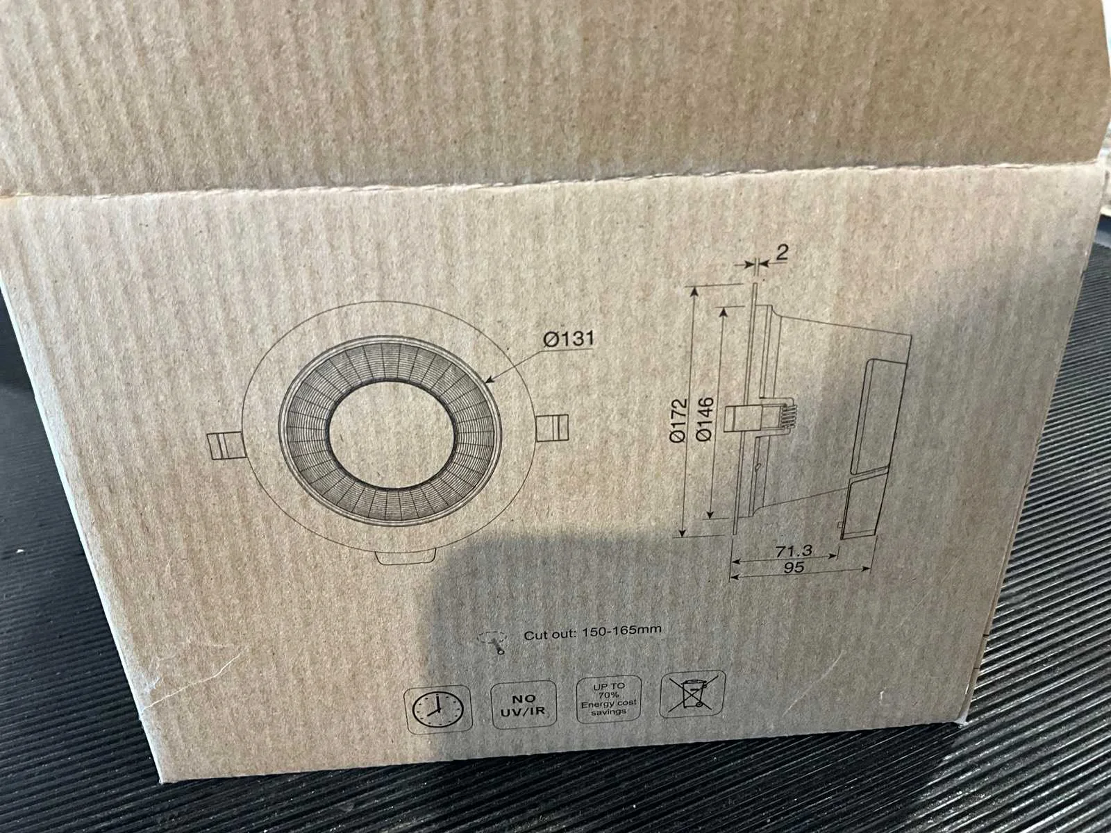 Set vaste LED-inbouwspots in wit thermoplast past zich aan al uw projecten aan dankzij de kleurtemperatuurselector (3000K, 4000K of 5700K). De opaline diffuser zorgt voor een homogene en comfortabele verlichting, ideaal voor kantoren, winkels of woonruimtes. Vermogen: 18W – tot 1992 lm Keuze uit kleurtemperaturen: 3000K (warm wit), 4000K (neutraal wit), 5700K (koel wit) Lichtkwaliteit: CRI >80 Afmetingen: Ø172 x 95 mm (150-165 mm uitsparing) Bescherming tegen binnendringen: IP54 (voorkant) / IP40 (achter) Klasse II – Dimbaar door fasebreuk Levensduur: 50.000 uur Een praktisch en duurzaam 3-in-1 armatuur, ontworpen voor flexibiliteit en visueel comfort. Metingen: - doorsnede 146-172 MM - breedte 71,3-95 MM (Zie foto's) Conditionering: - per individuele doos - 12 per doos No Merk: Led dowlight Model: Caméléon