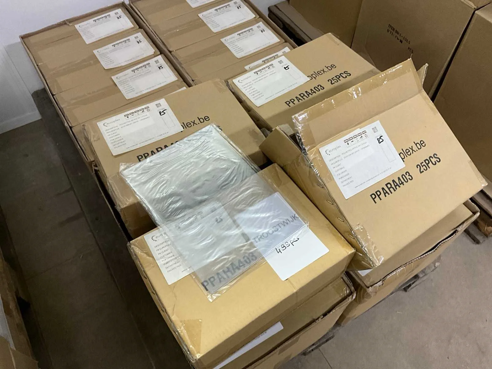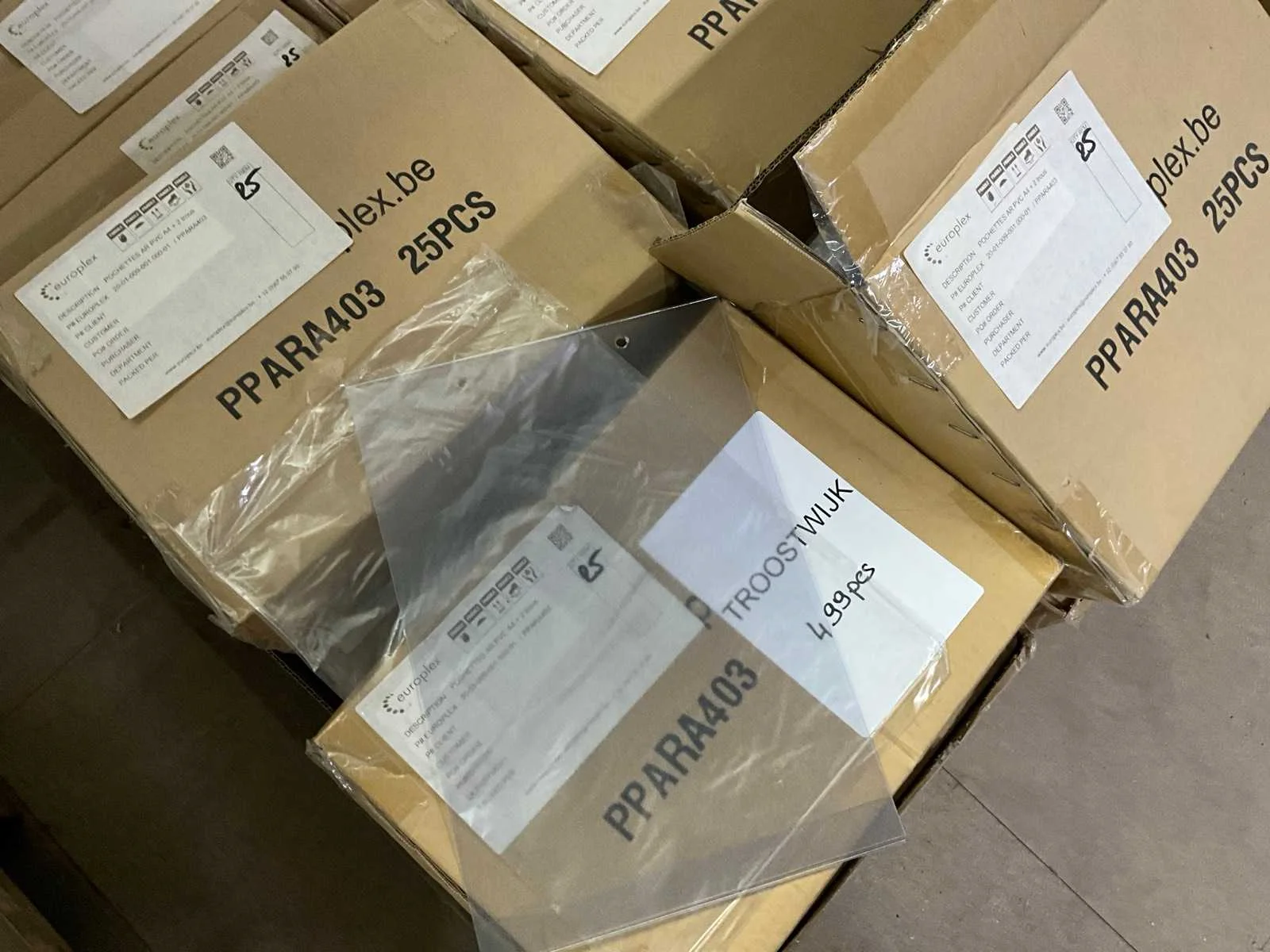 Set plastic zakjes om te plakken met gaten waar de vellen verwisselbaar zijn in A3 - Set van 499 zakjes - Nieuwstaat - nog verpakt - per doos van 25 stuks - Hangt met gaatjes aan de bovenkant van het zakje Verkocht zoals het is - zie foto's Non