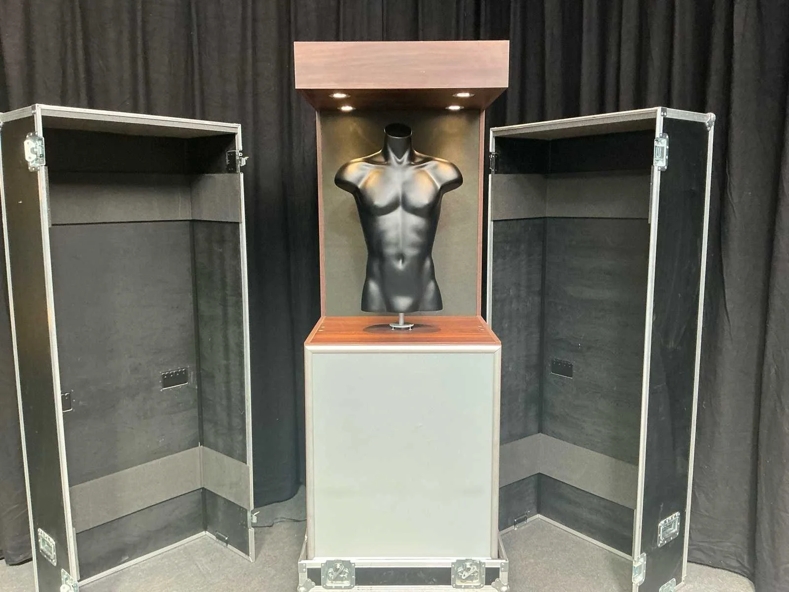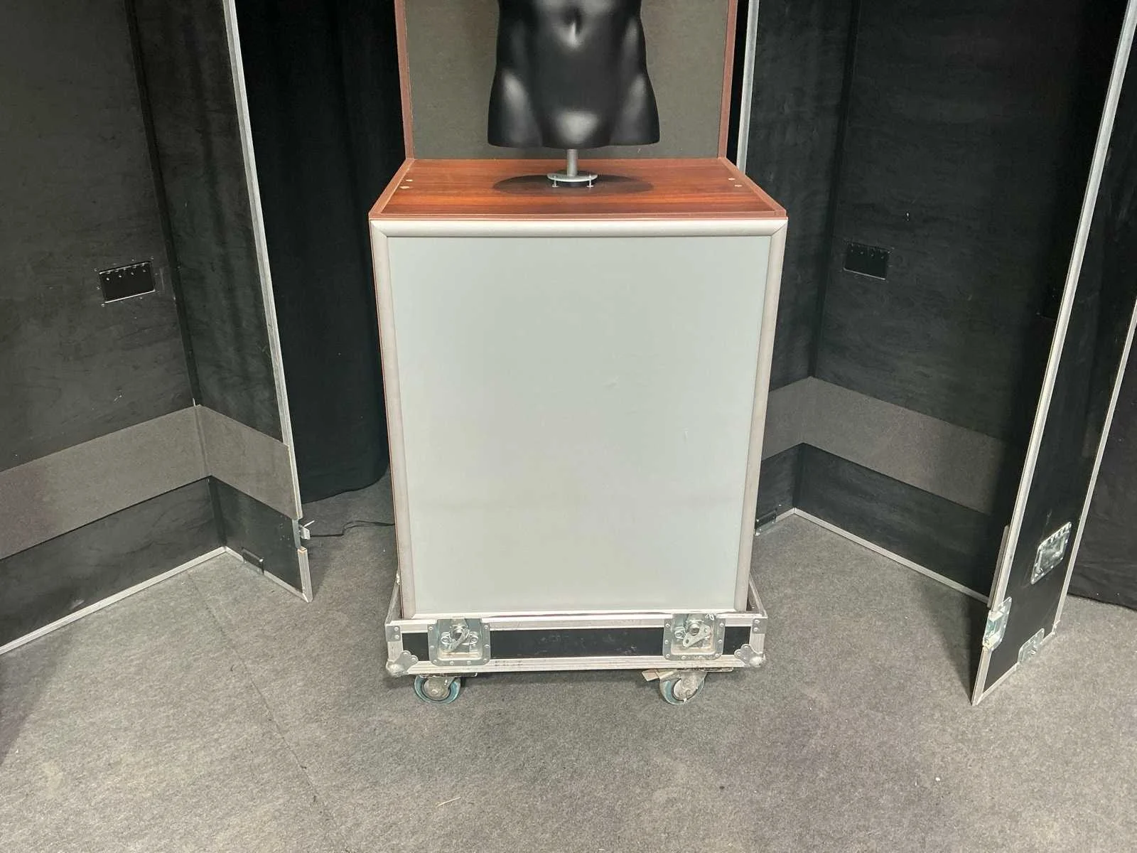 Paspop met kastinrichting. Het lot bevat ook de flightcase voor het vervoeren van de paspop. Nee Kleur: Bruin Heren: true