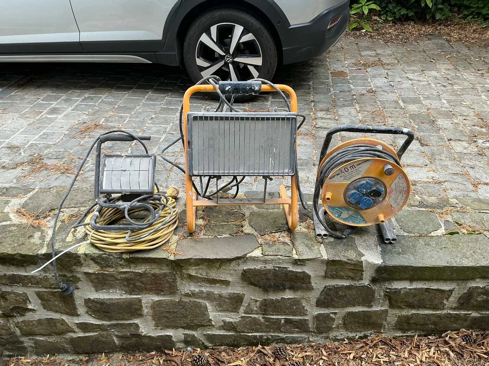 Het lot bevat 3 lampen en twee verlengkabels. No