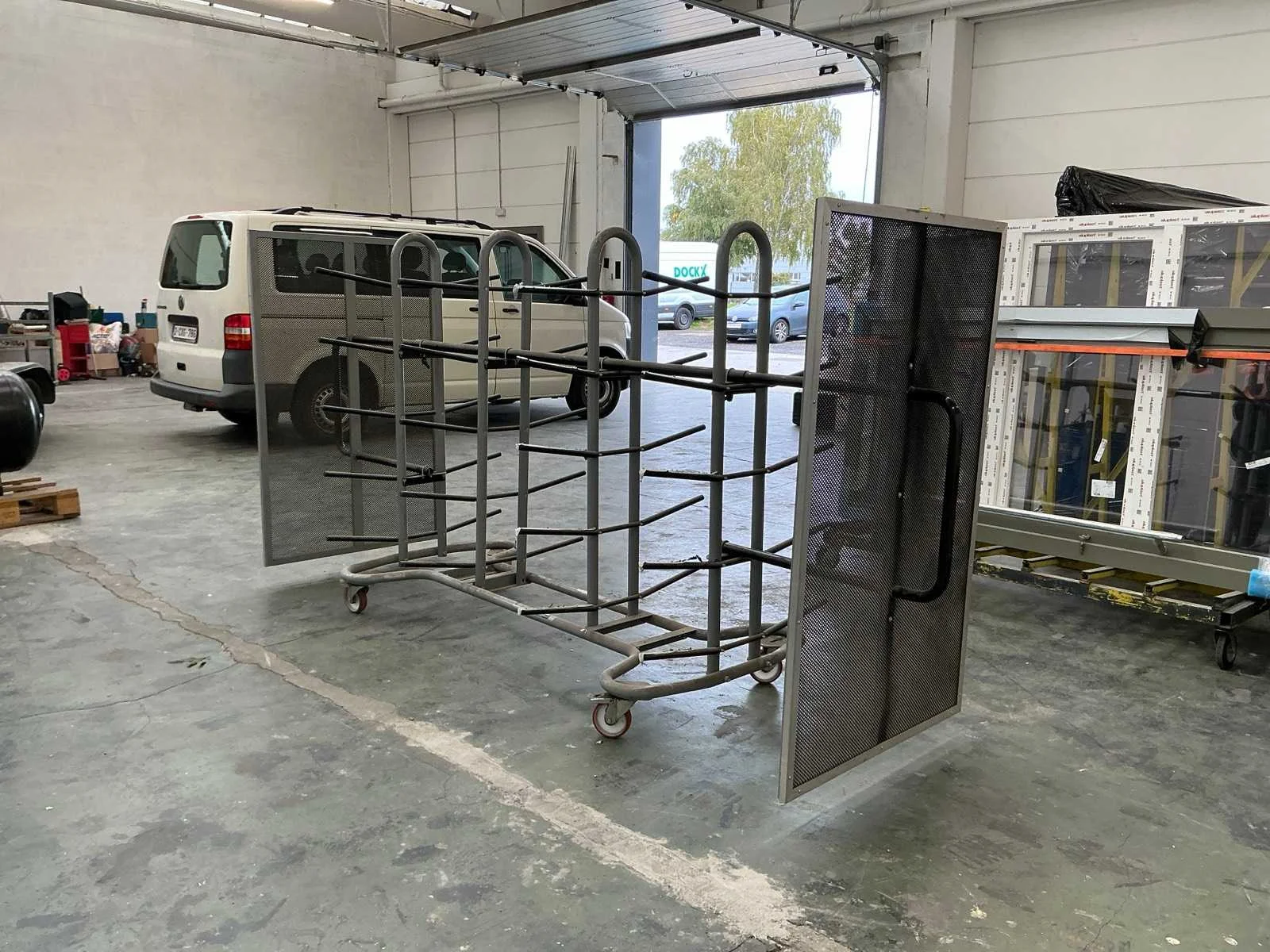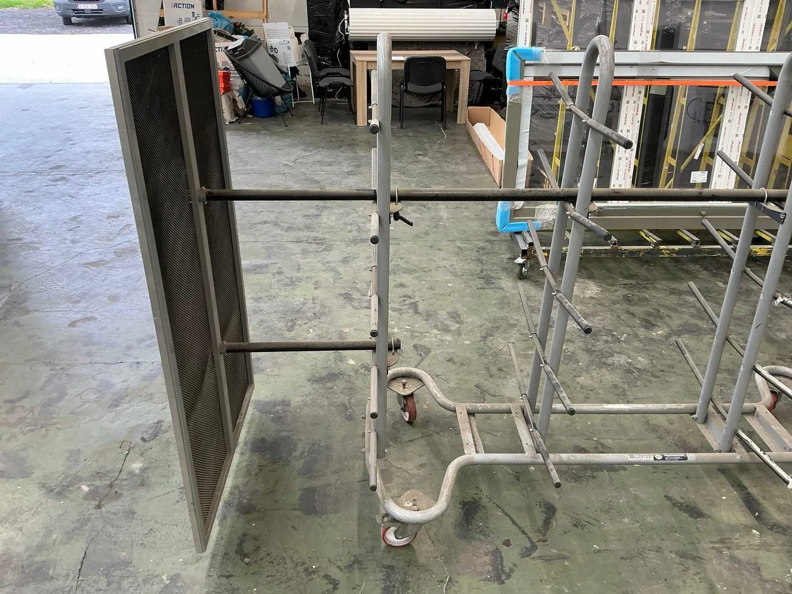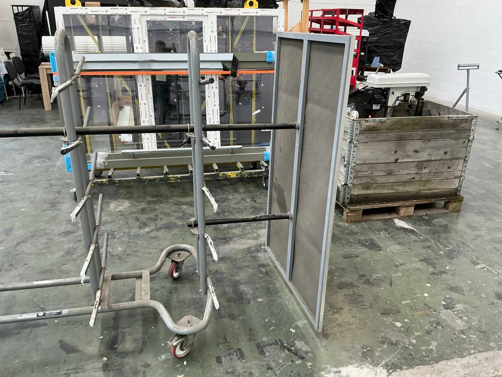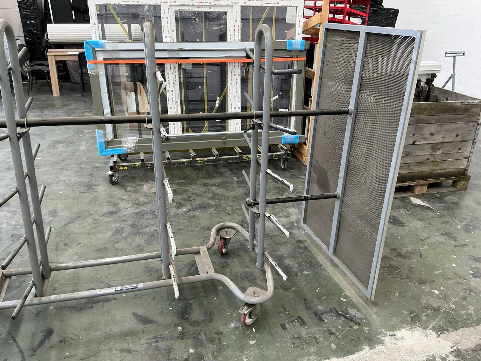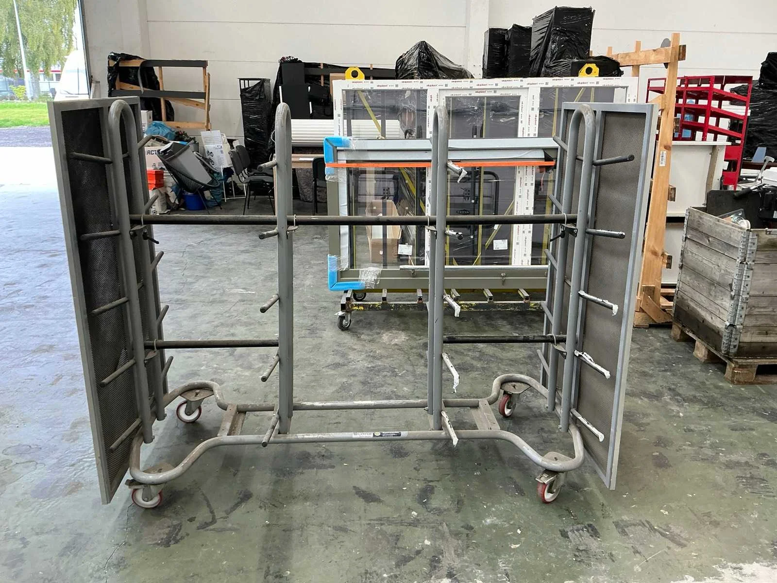 In goede staat 3m- 2m Uitschuifbare trolley voor ramen of kozijnen. Non Model: Chariot de transport pour vitrages ou châssis Kleur: Gris