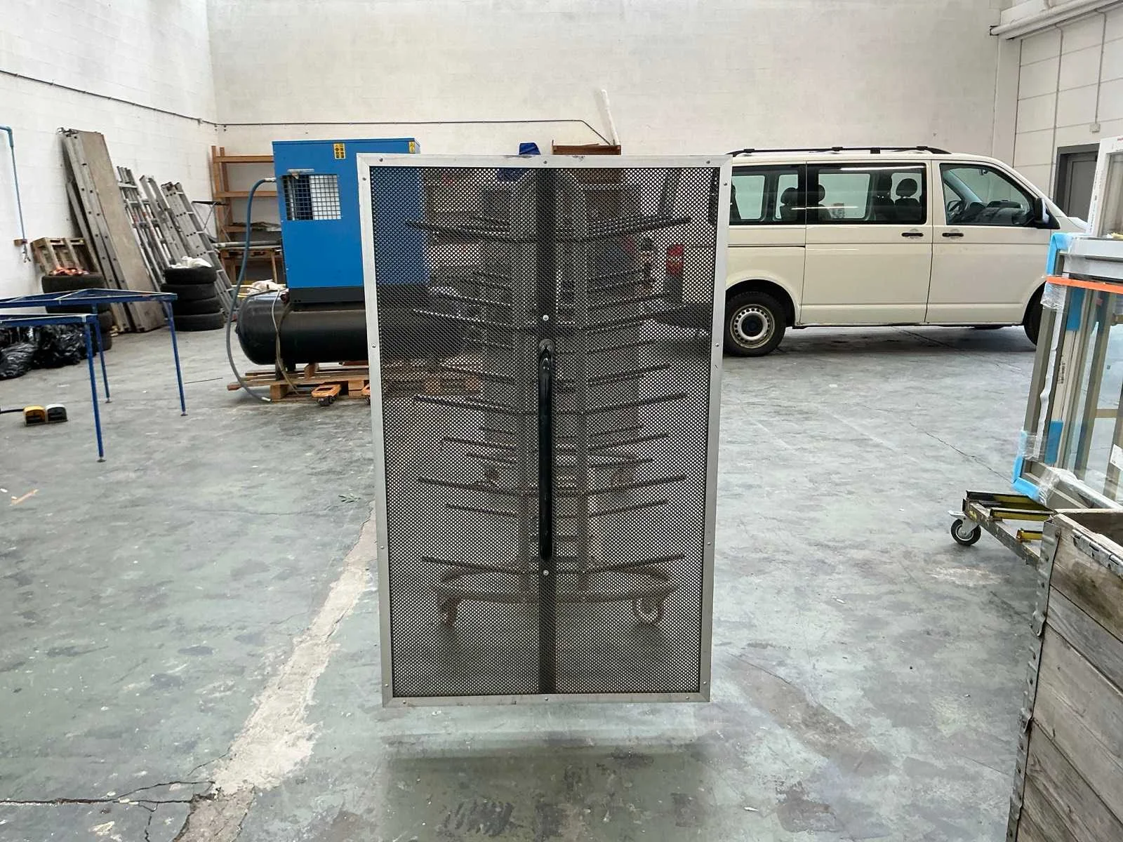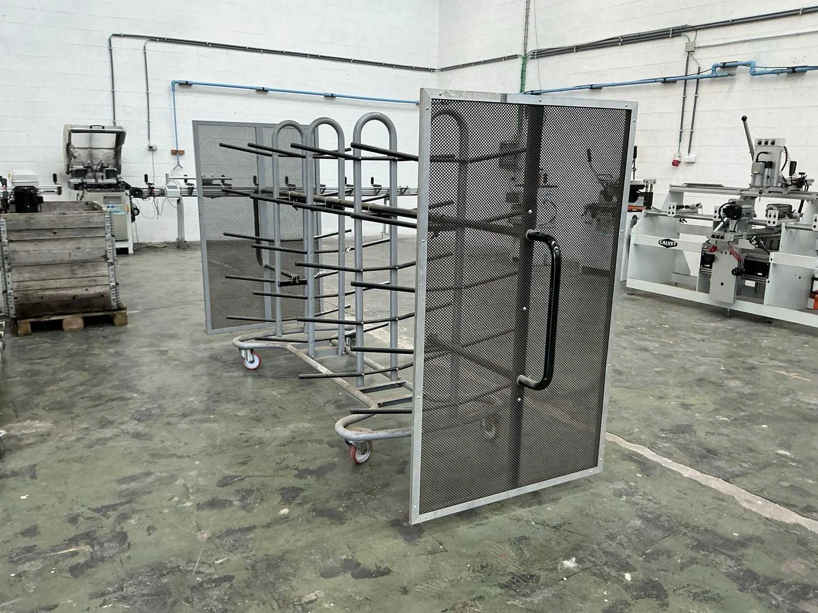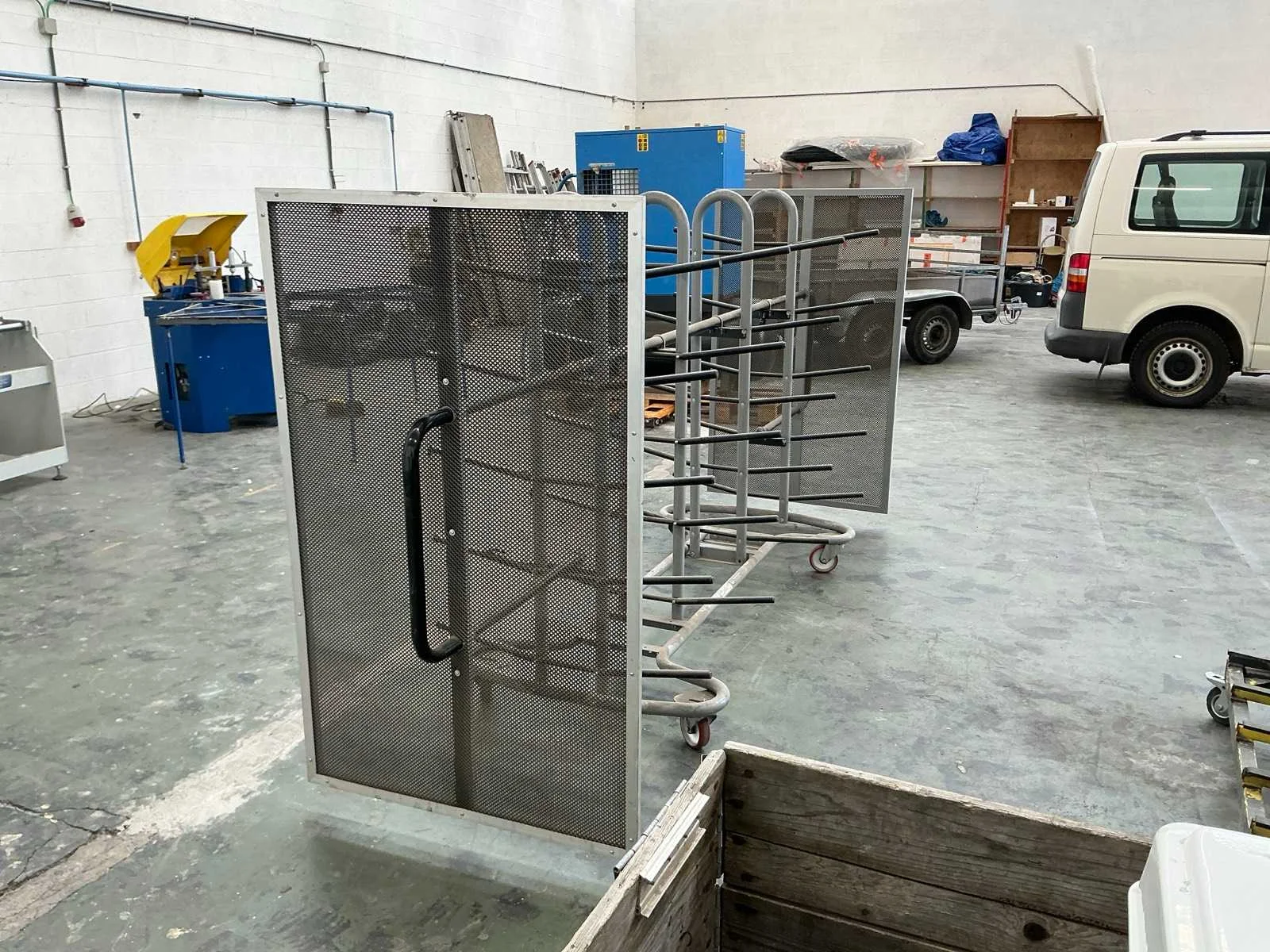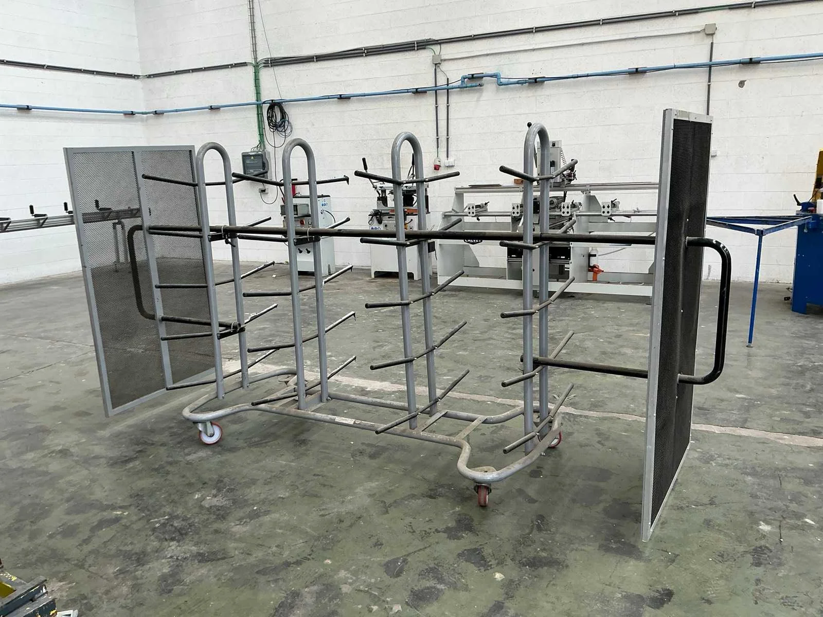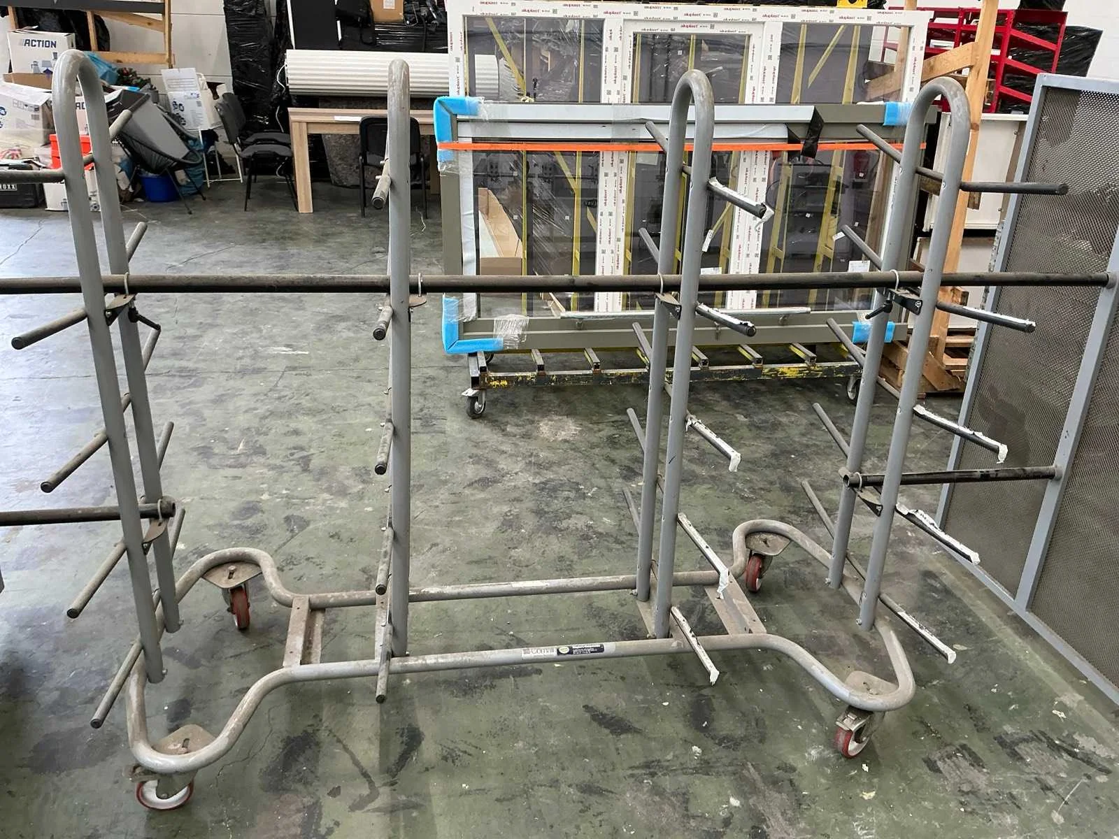In goede staat 3m- 2m Uitschuifbare trolley voor ramen of kozijnen. Non Model: Chariot de transport pour vitrages ou châssis Kleur: Gris