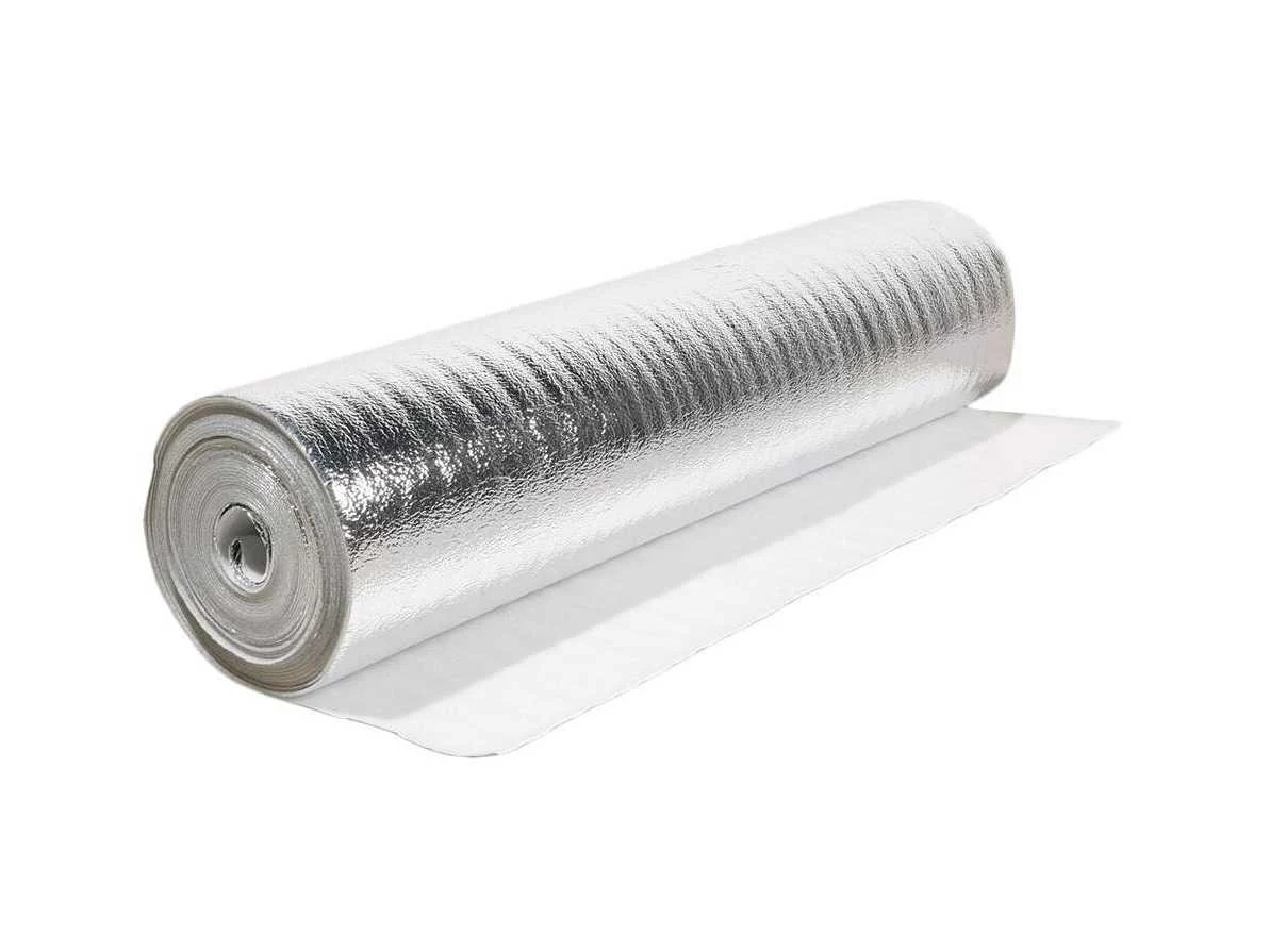 12 rollen sound eliminator aluminium, dikte: 2 mm, geluid reducerend, dampdicht, met overlap 100mm, licht egaliserend, geschikt voor vloerverwarming, per rol: 15m2, totaal: 180m2. No