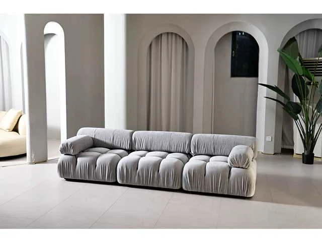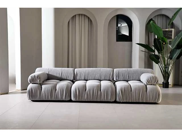 Modulair, bestaande uit 3 stuks, ongebruikt No Model: S1247-16 Product type: fauteuil Kleur: grijs Lengte: 90cm Breedte: 90cm Hoogte: 65cm Materiaal: polyester