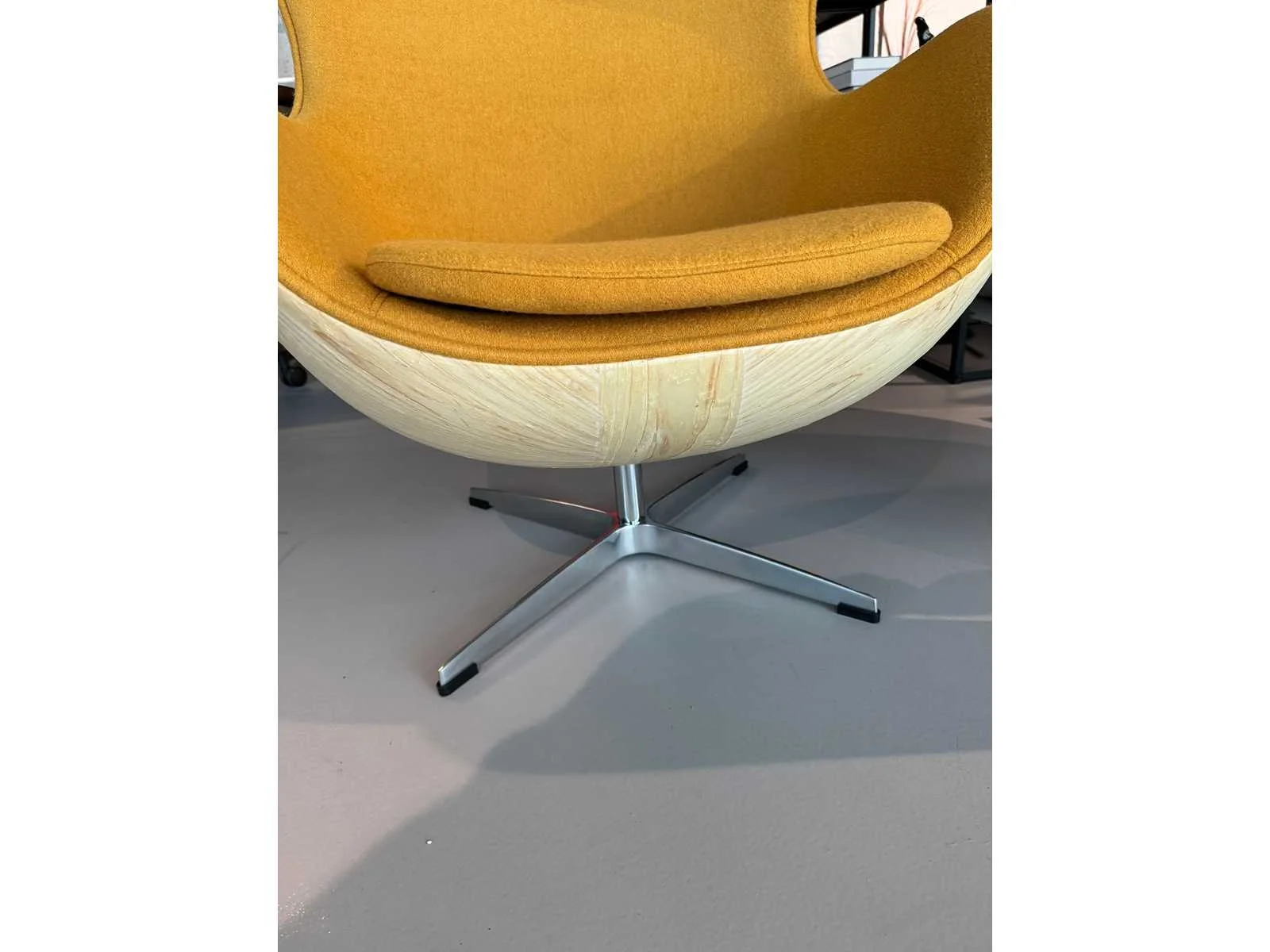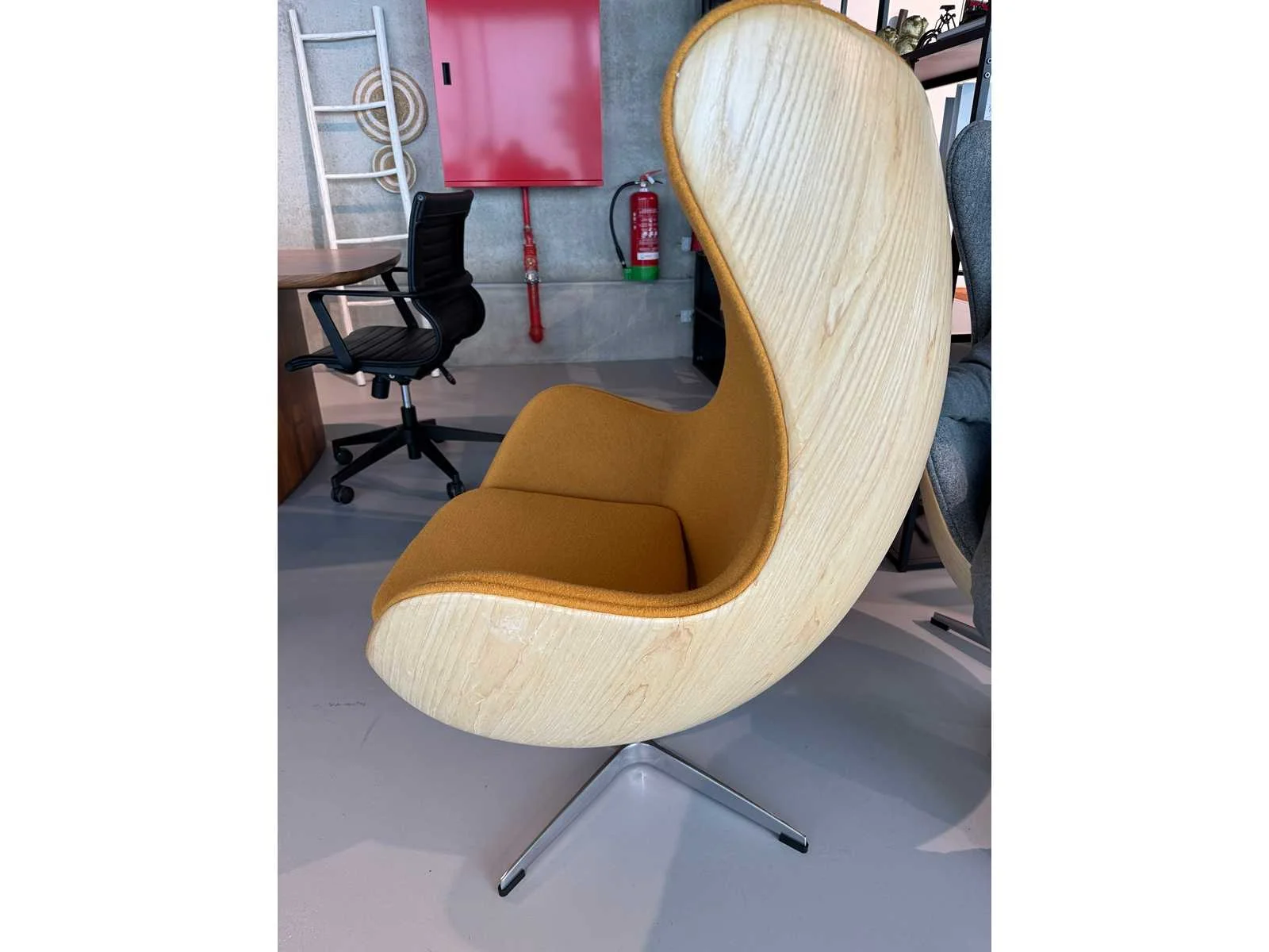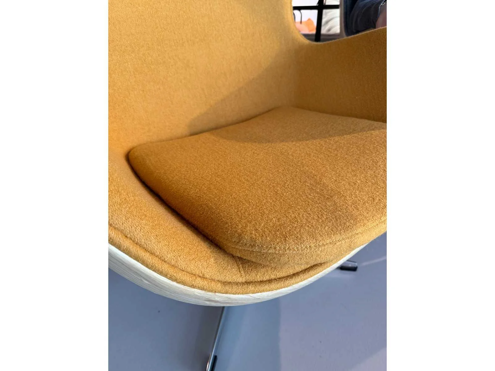 Egg Chair natuur eik frame, vintage look, kruispoot, draaibaar onderstel, draai en kantelbaar, ongebruikt No Model: Egg Product type: fauteuil Kleur: geel Breedte: 80cm Hoogte: 110cm Zithoogte: 45cm Materiaal: houtfineer en kasjmier