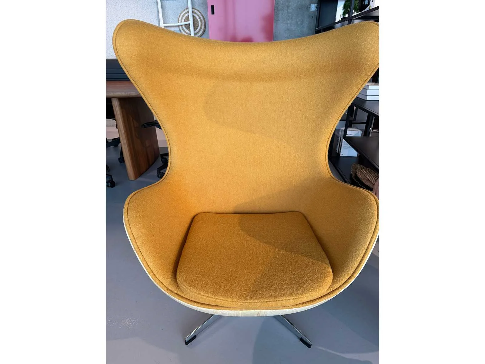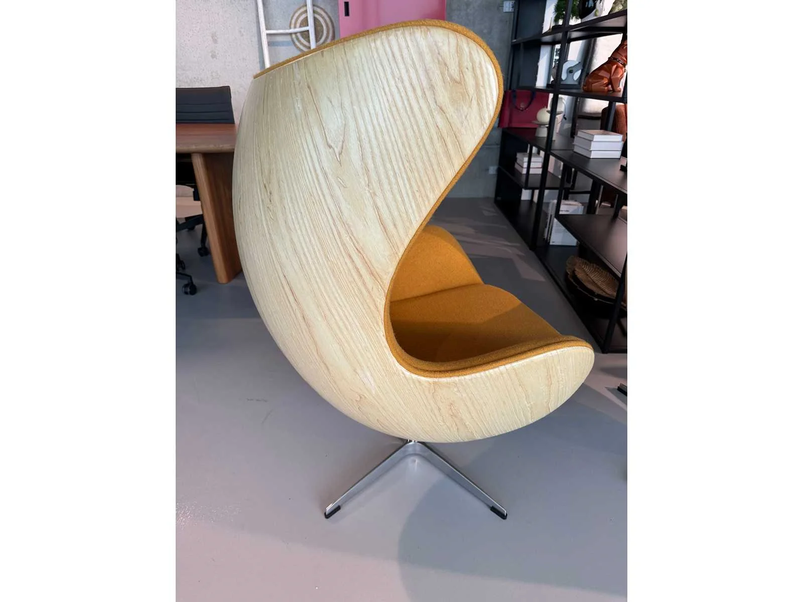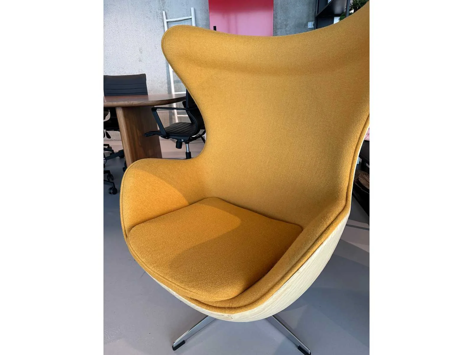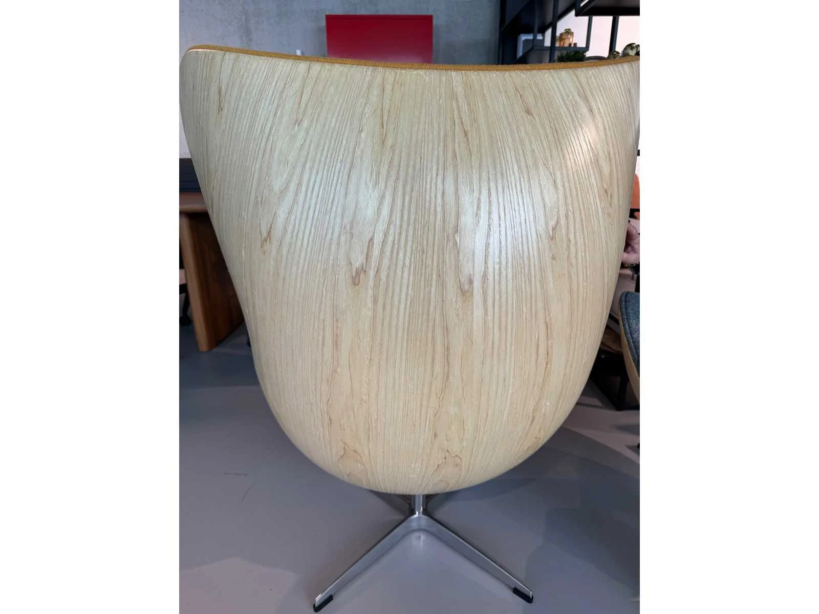 Egg Chair natuur eik frame, vintage look, kruispoot, draaibaar onderstel, draai en kantelbaar, ongebruikt No Model: Egg Product type: fauteuil Kleur: geel Breedte: 80cm Hoogte: 110cm Zithoogte: 45cm Materiaal: houtfineer en kasjmier