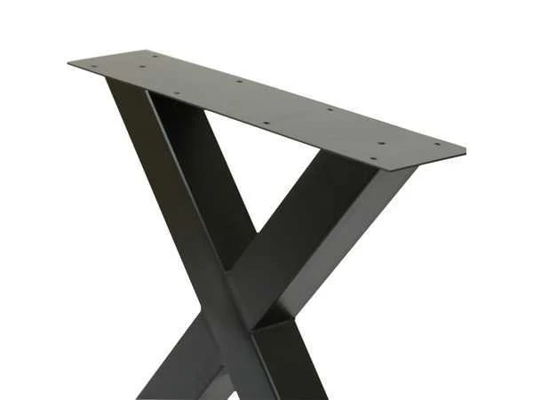 X-potenset, schroefplaat voor montage, zwart lak afwerking met industriele look, vloerbeschermers rubber, set bestaande uit 2 poten, holle frame. ongebruikt Let op: Bij afhaling van de goederen dient u deze zorgvuldig te controleren. Na afhaling is retour of na-service niet mogelijk. Indien u niet aanwezig bent op de afgesproken afhaaldag, worden extra kosten in rekening gebracht. No Model: x Product type: tafelpoot Kleur: zwart Gewicht: 20kg Breedte: 90cm Hoogte: 75cm Materiaal: metaal