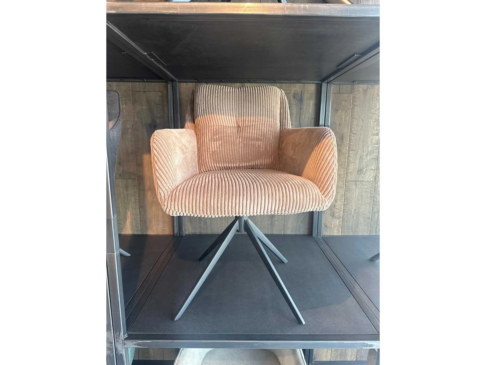 Verzwaard en gecoat onderstel, ongebruikt Let op: Bij afhaling van de goederen dient u deze zorgvuldig te controleren. Na afhaling is retour of na-service niet mogelijk. Indien u niet aanwezig bent op de afgesproken afhaaldag, worden extra kosten in rekening gebracht. No Model: JD8760-17 Product type: Design eetkamerstoelen Kleur: brown Materiaal: geribt