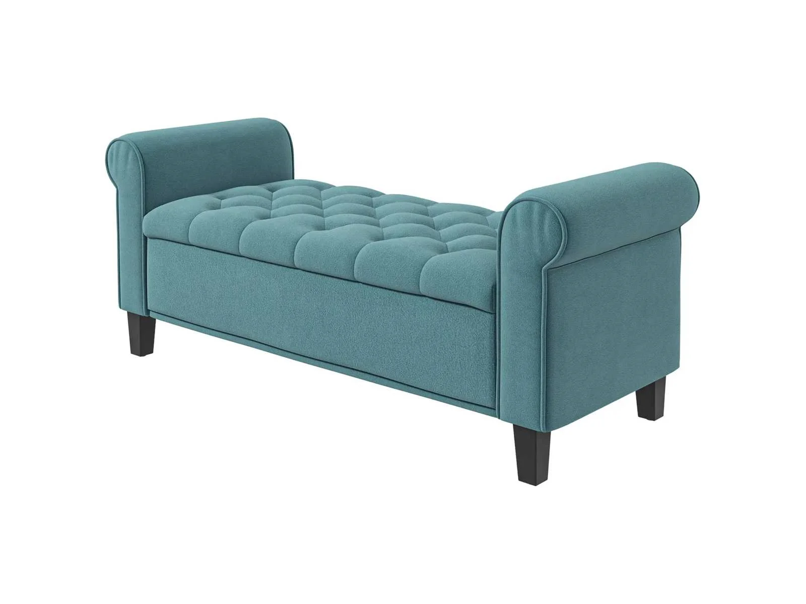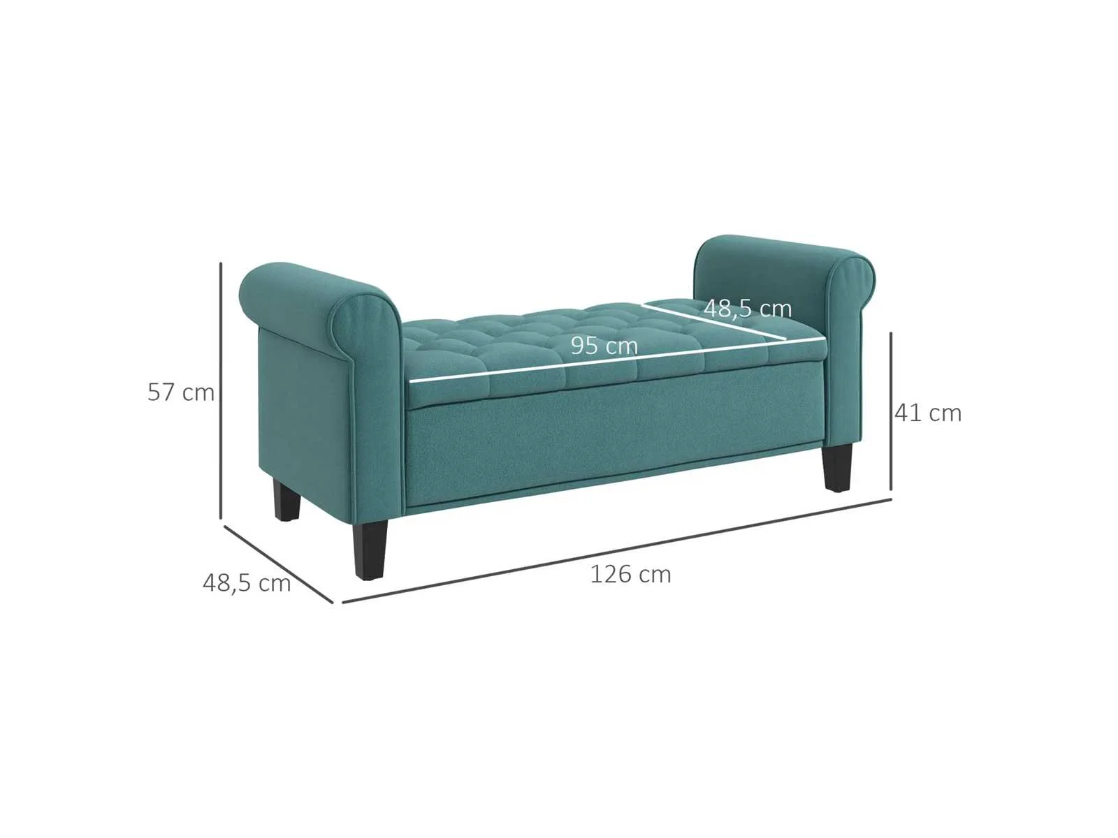 Specificaties: - Kleur: Groen - Materialen: matte fluwelen stof (100% polyester), schuimvulling, multiplex, rubberwood -Zon. totaal: 126W x 48.5D x 57H cm -Zon. Afmetingen zitting: 95W x 48.5D x 41H cm -Zon. afmetingen plank: 95B x 40D x 19H cm - Aanbevolen maximale belasting: 220 kg Non
