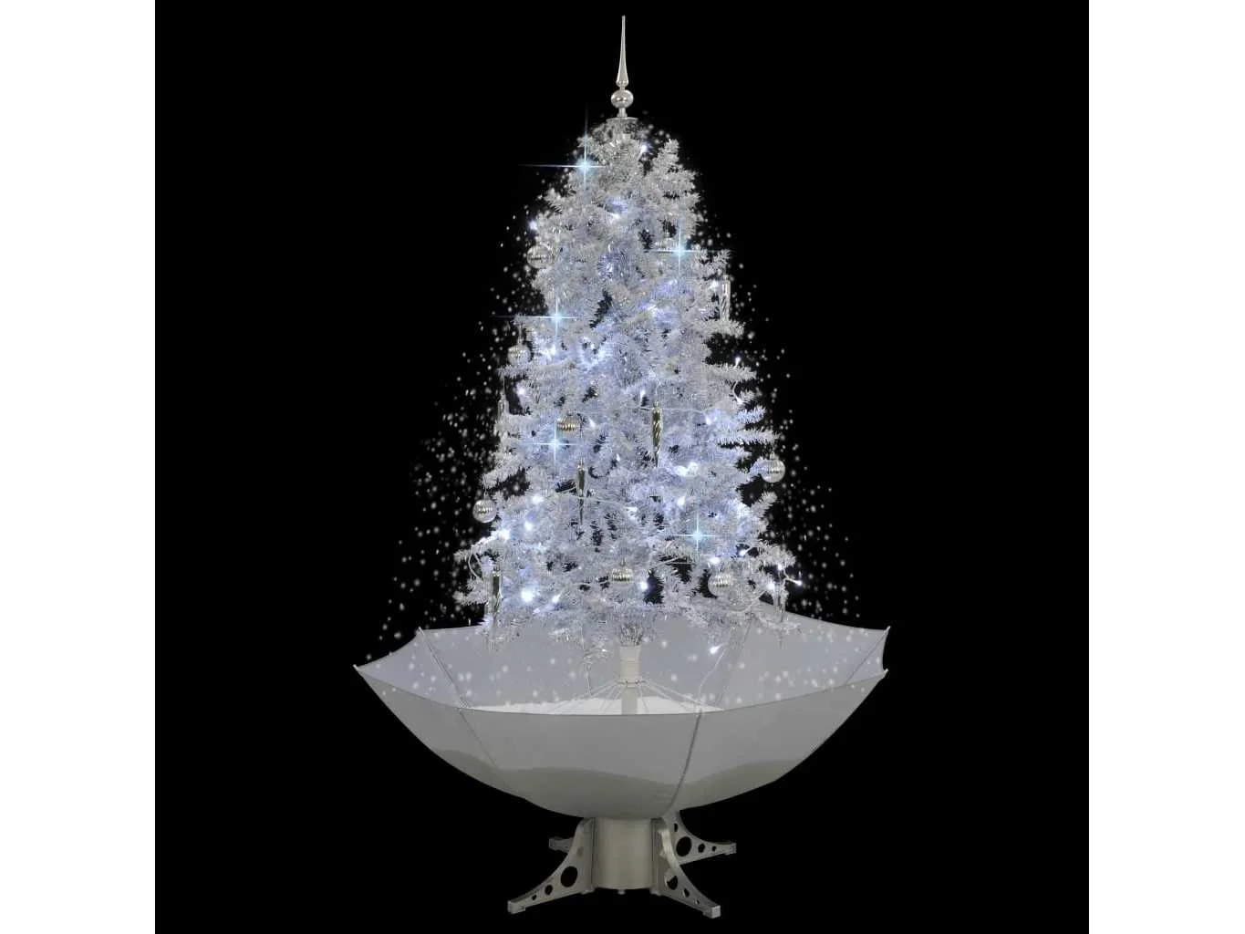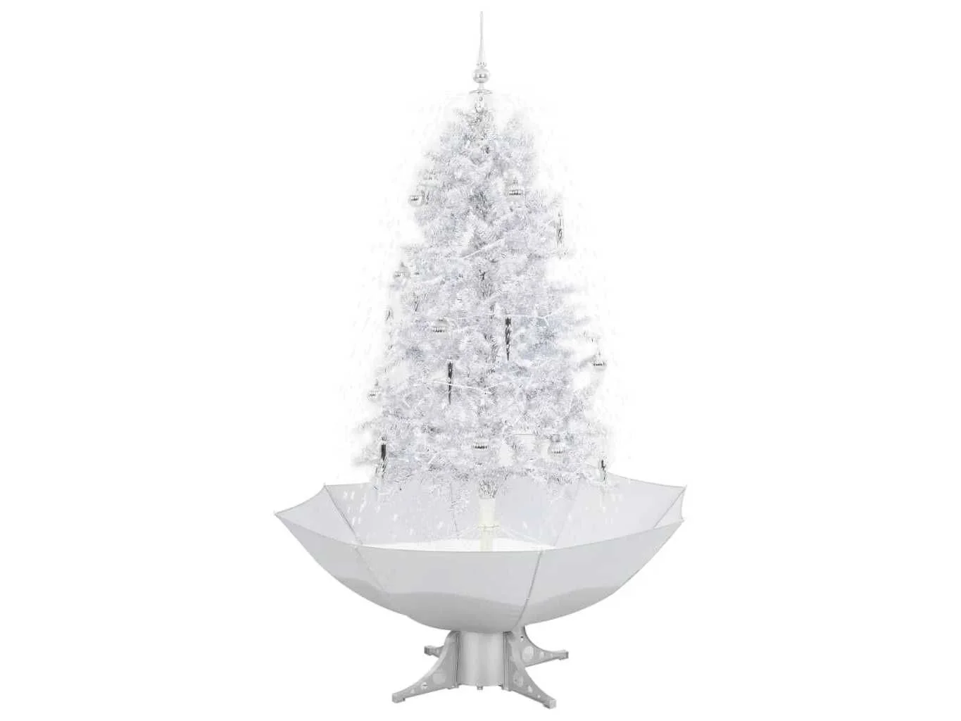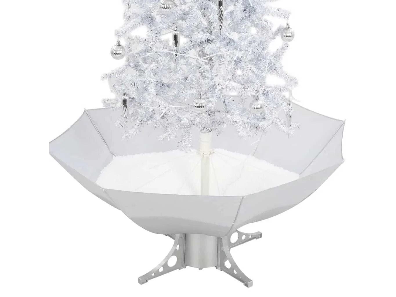 Kenmerken Onderscheidend sneeuwvalontwerp Kleur: wit + zilver (decoraties) Materiaal: PVC (boom) + polyester (paraplu + plastic (decoraties) Totale hoogte: 170 cm Diameter van de steun: 25 cm Diameter schacht: 105 cm Diameter van de parasolvoet: 107 cm Met 72 vestigingen Lichtbron: LED Lichtkleur: Wit Ingangsspanning: 230-240 V ~; 50 Hz Uitgangsspanning: 12 V Vermogen: 9 W Met 1 melodie Voor gebruik binnenshuis Non