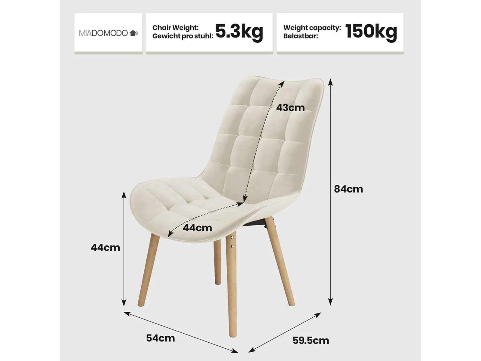 Eetkamerstoelen - crème fluweel (x4)