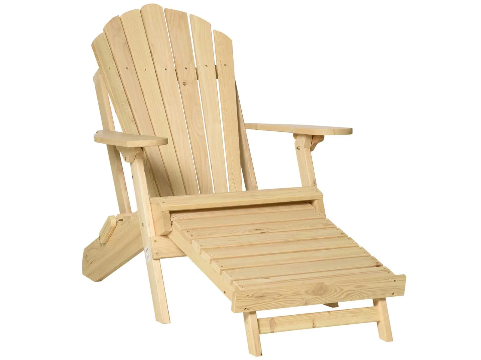 Specificaties: - Kleur: naturel - Materiaal: grenenhout -Zon. totaal: 78W x 140D x 94H cm -Zon. opgevouwen: 124L x 78B x 35H cm -Zon. voetsteun: 59L x 50L cm -Zon. Zitting: 56L x 39L cm -Zon. Rugleuning: 82L x 50W cm - Zithoogte: 39 cm (voor), 28 cm (achter) - Aanbevolen maximale belasting: 113 kg Non