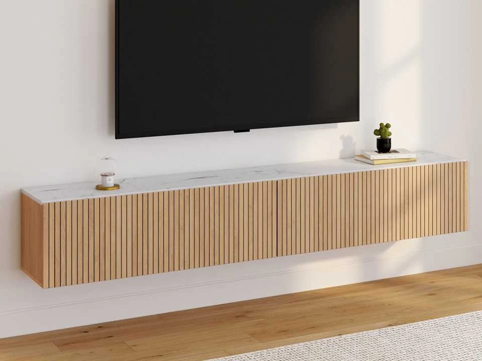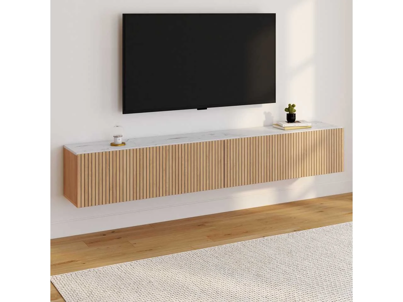 Marceau tv-meubel voor aan de muur met latteneffect en marmeren blad