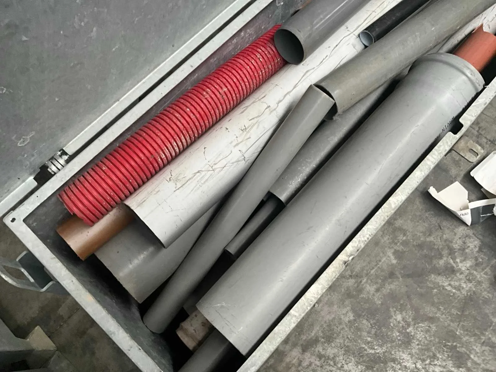 Met hoogte 76cm, eigen gewicht 90kg, compleet met diverse PVC buizen in diverse lengtes en dia Nee Merk: Eichinger Bouwjaar: 2021 Serienummer: B114946 Afmeting l: 640mm Afmeting b: 1900mm