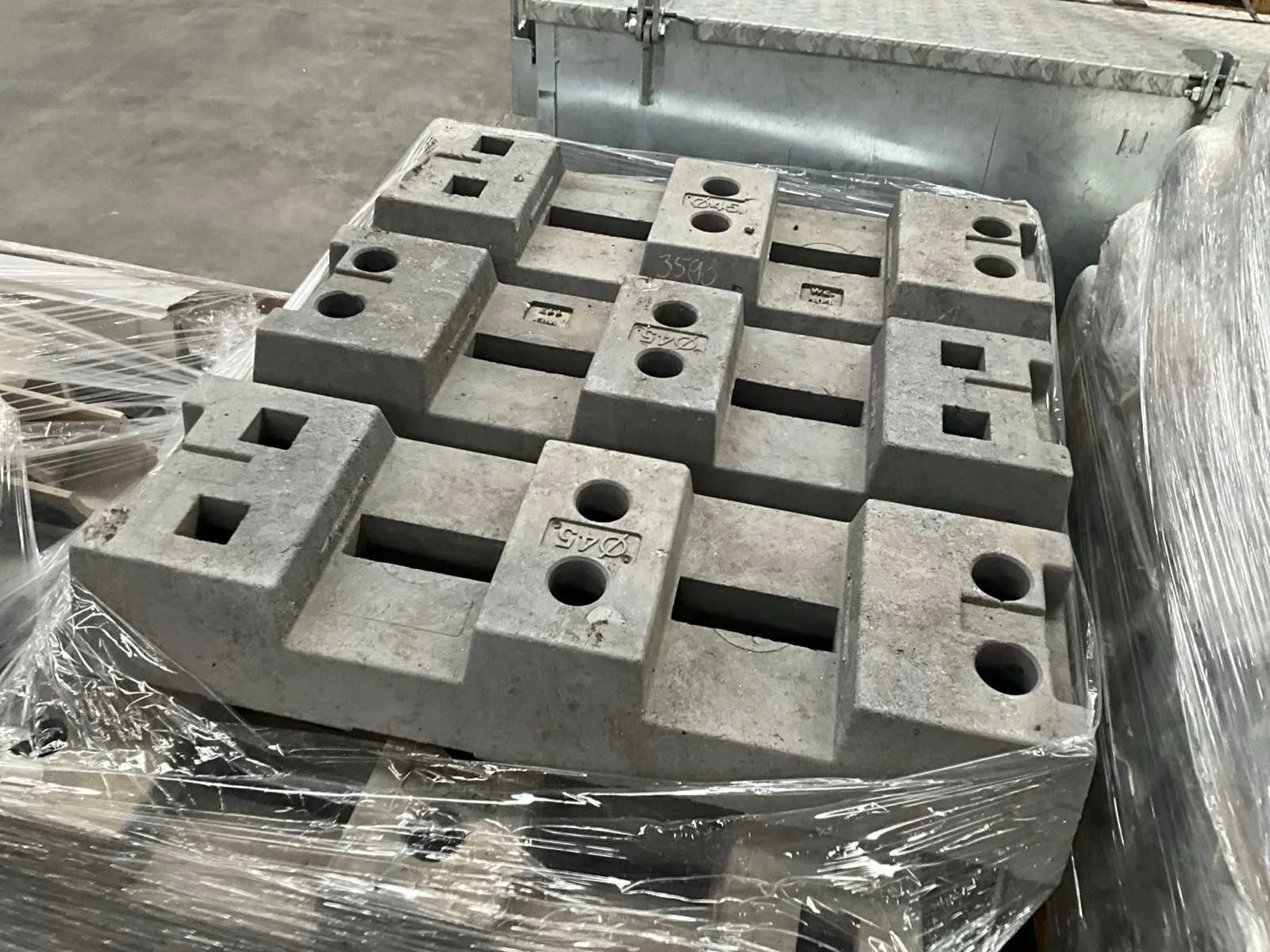 Voetblokken in kunststoffen uitvoering, elk met afmeting 80x30 cm. Nee Totale afmeting L: 2400mm Totale afmeting Hoogte: 1200mm